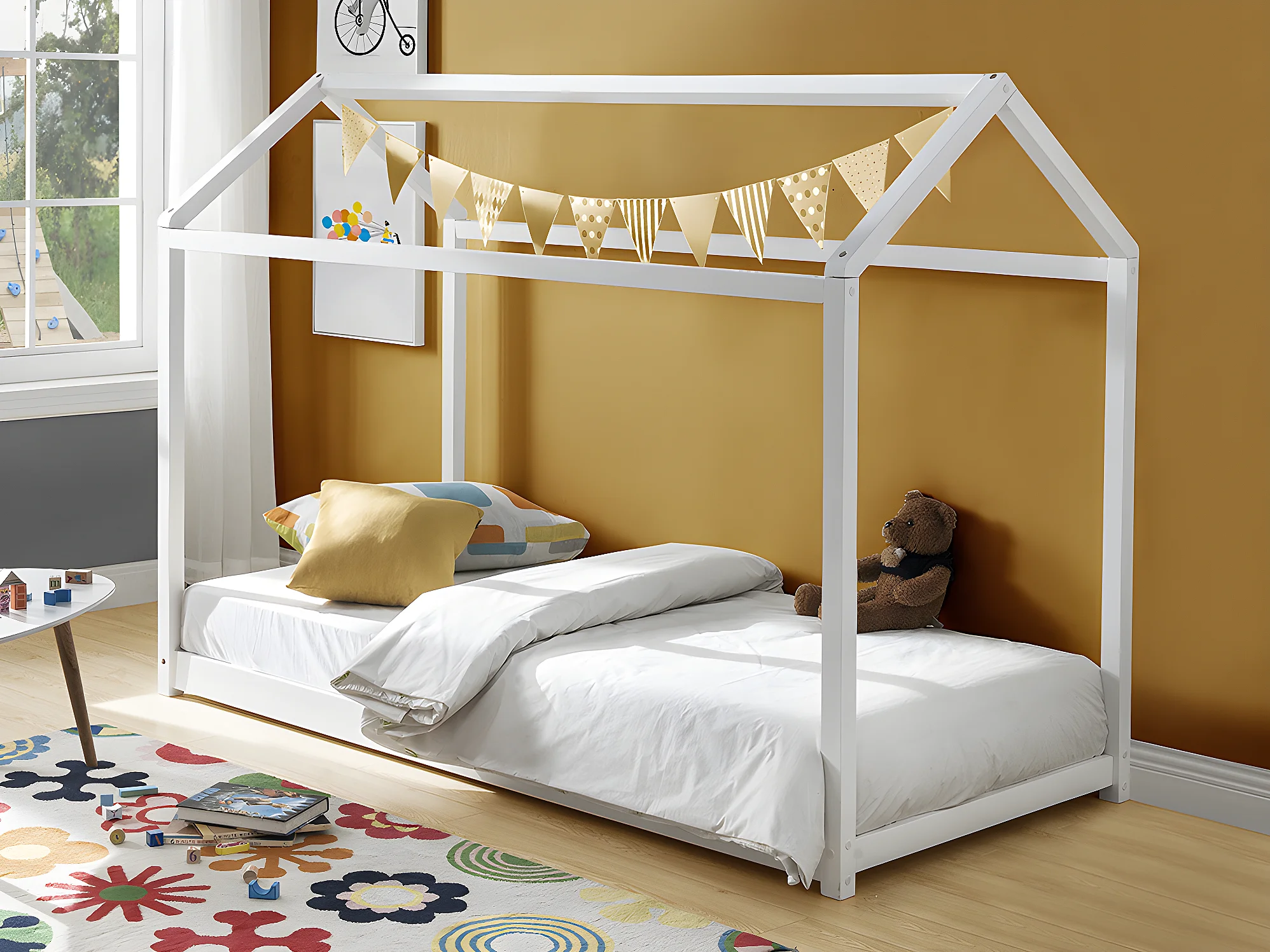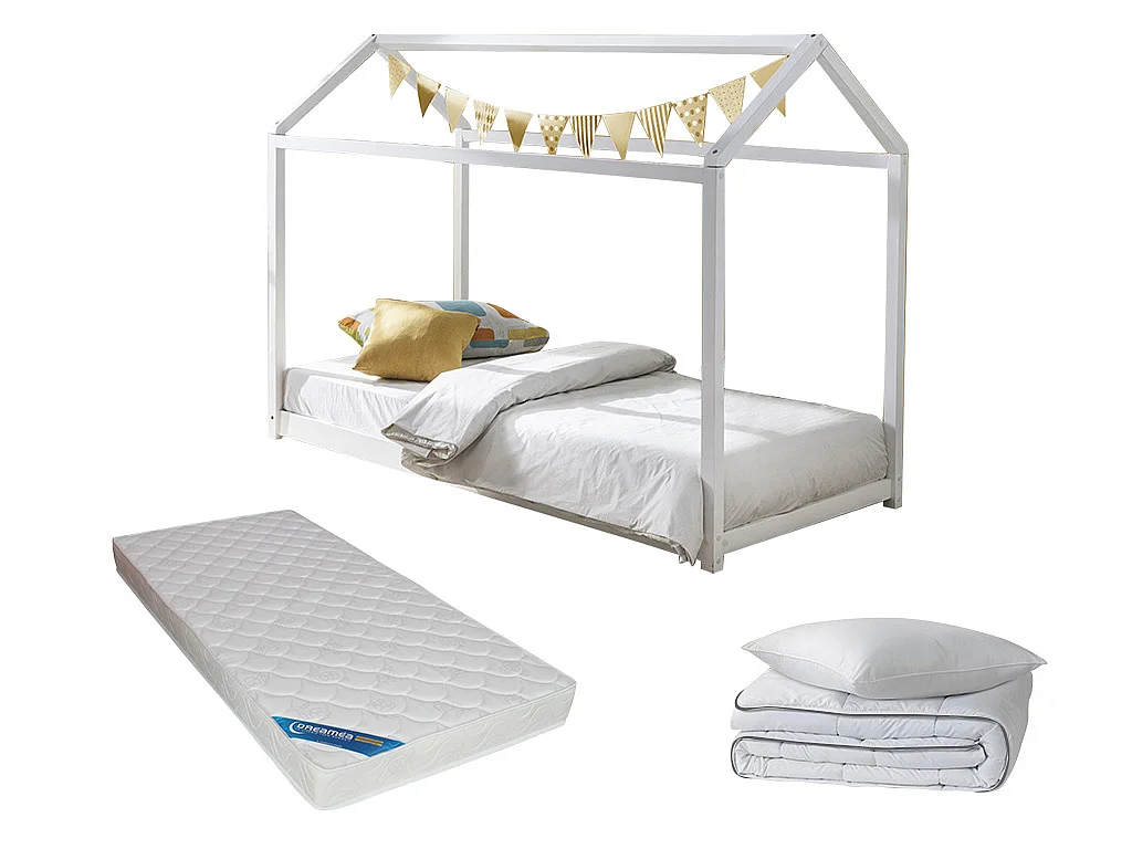 Pack cama cabana 90 x 190 cm - Pinho branco + Colchão + Edredão + Almofada - AVENTURIER