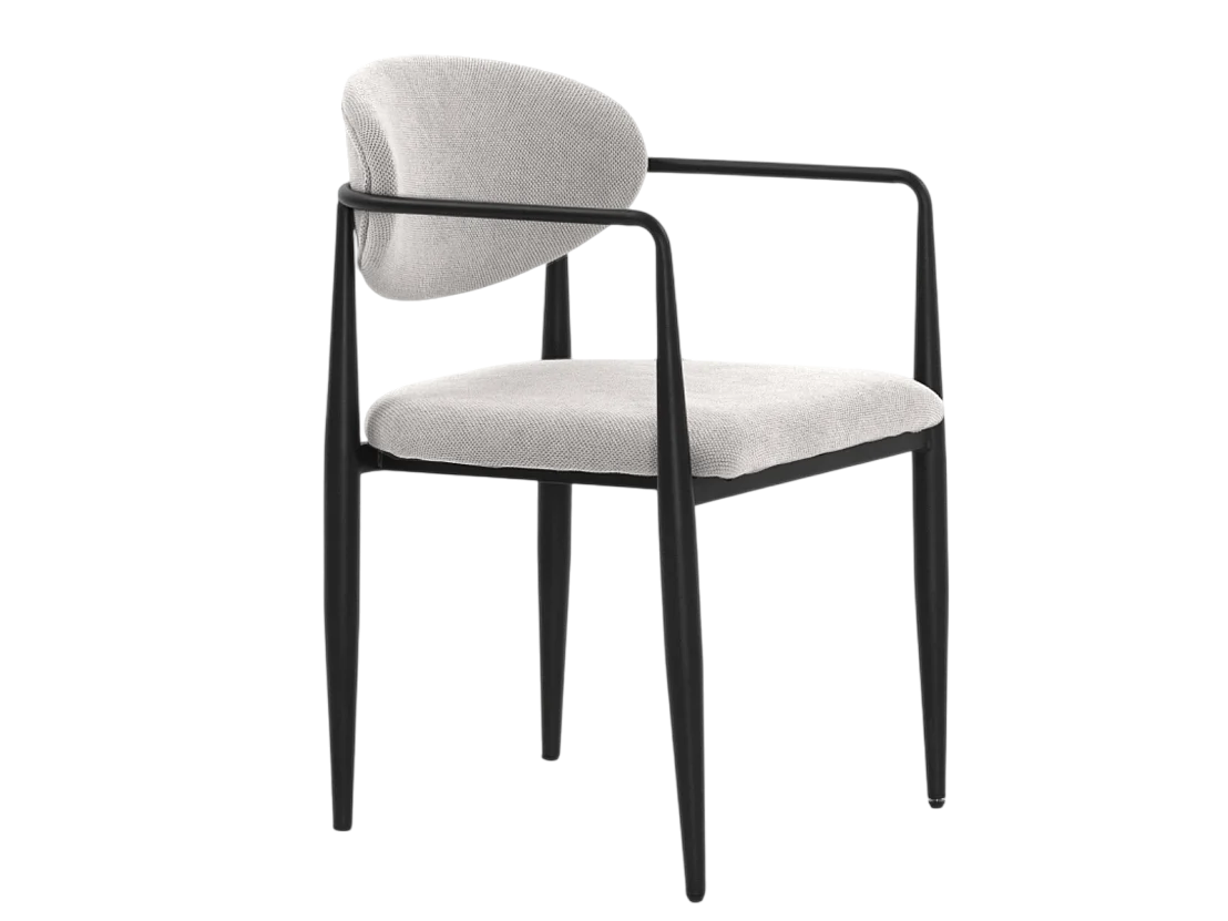 Pacote 4 poltronas estofadas em chenille mármore com pés em metal preto