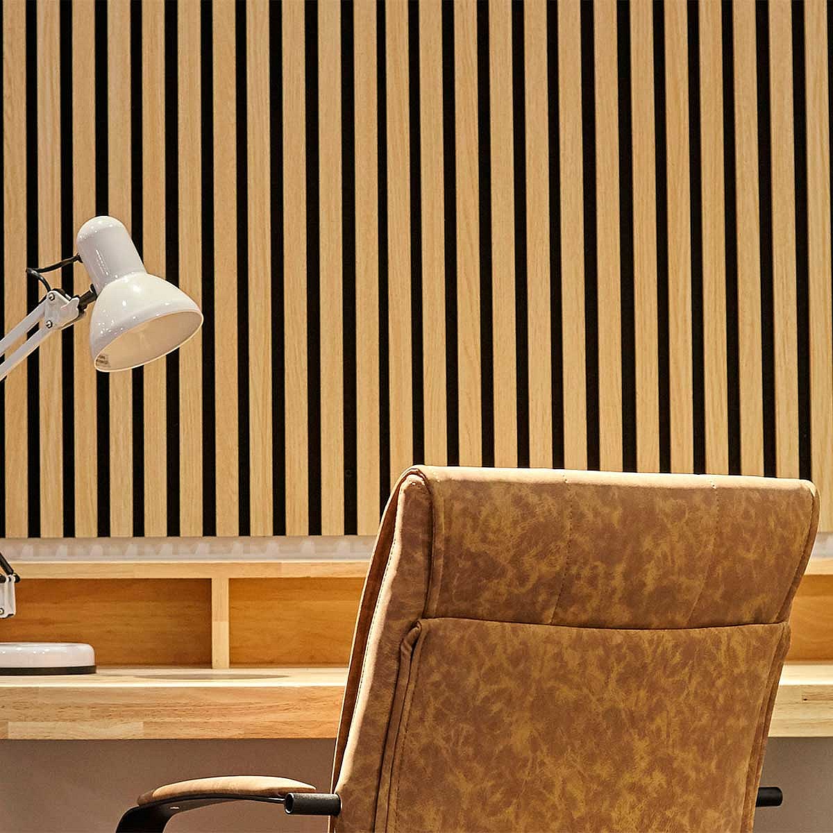 Painéis Acústicos com Ripas SucceBuy de Madeira, 20 x 240 cm, Decoração de Parede, com Índice NRC Elevado de 0,85 e Certificação Acústica SGS, em Carvalho Preto