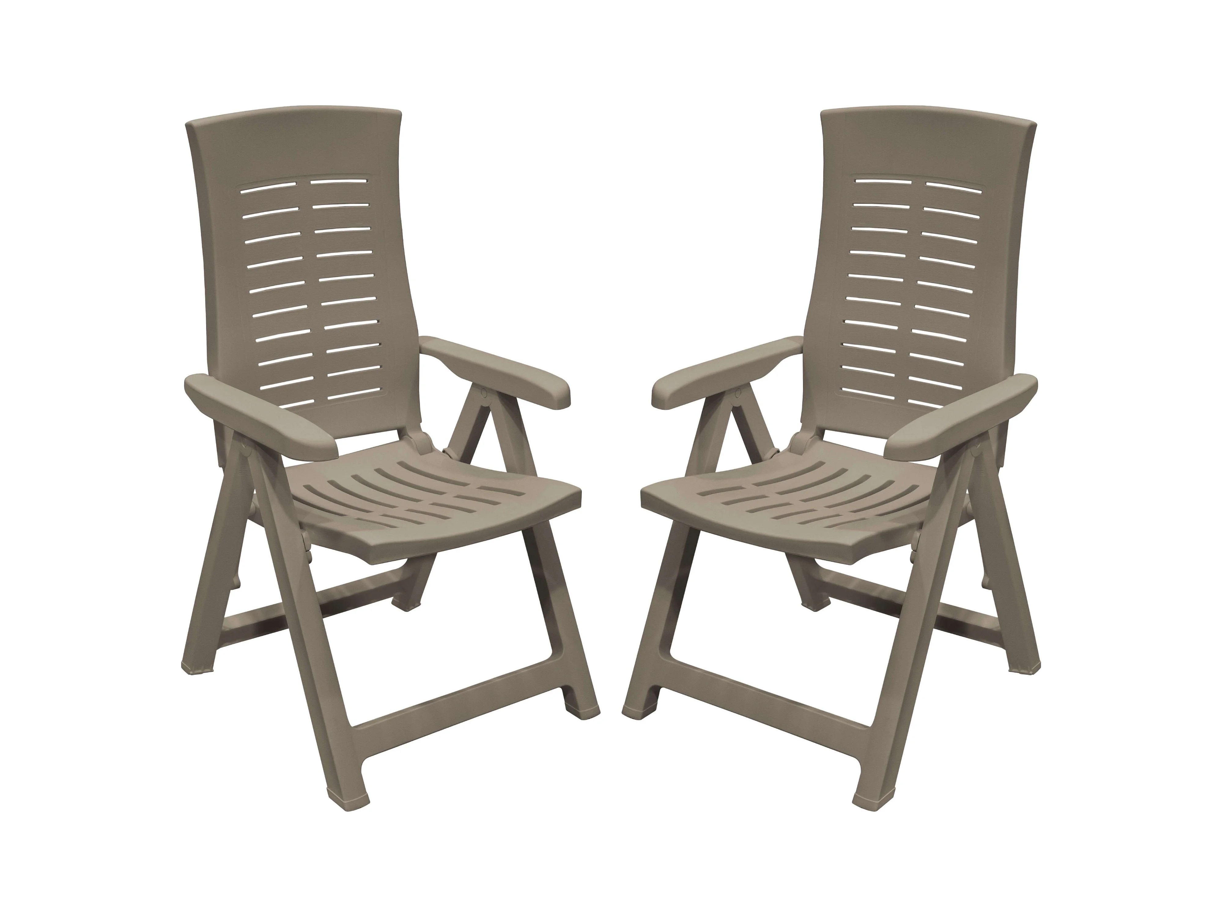 Pacote de 2 poltronas de exterior prateadas, 4 posições, polipropileno castanho, 59x108x62 cm