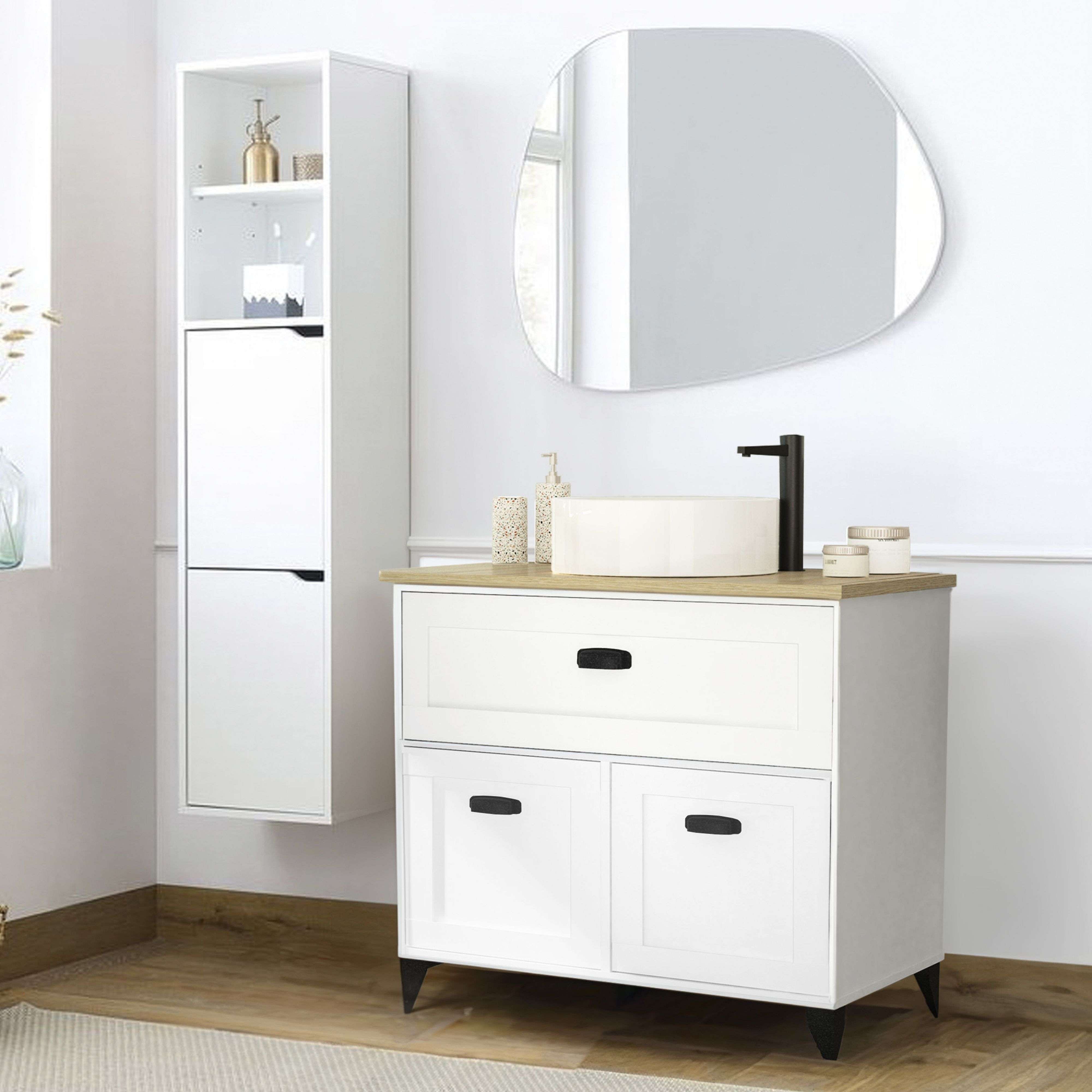 Pacote de móveis de banheiro branco/carvalho com coluna e inclui pia