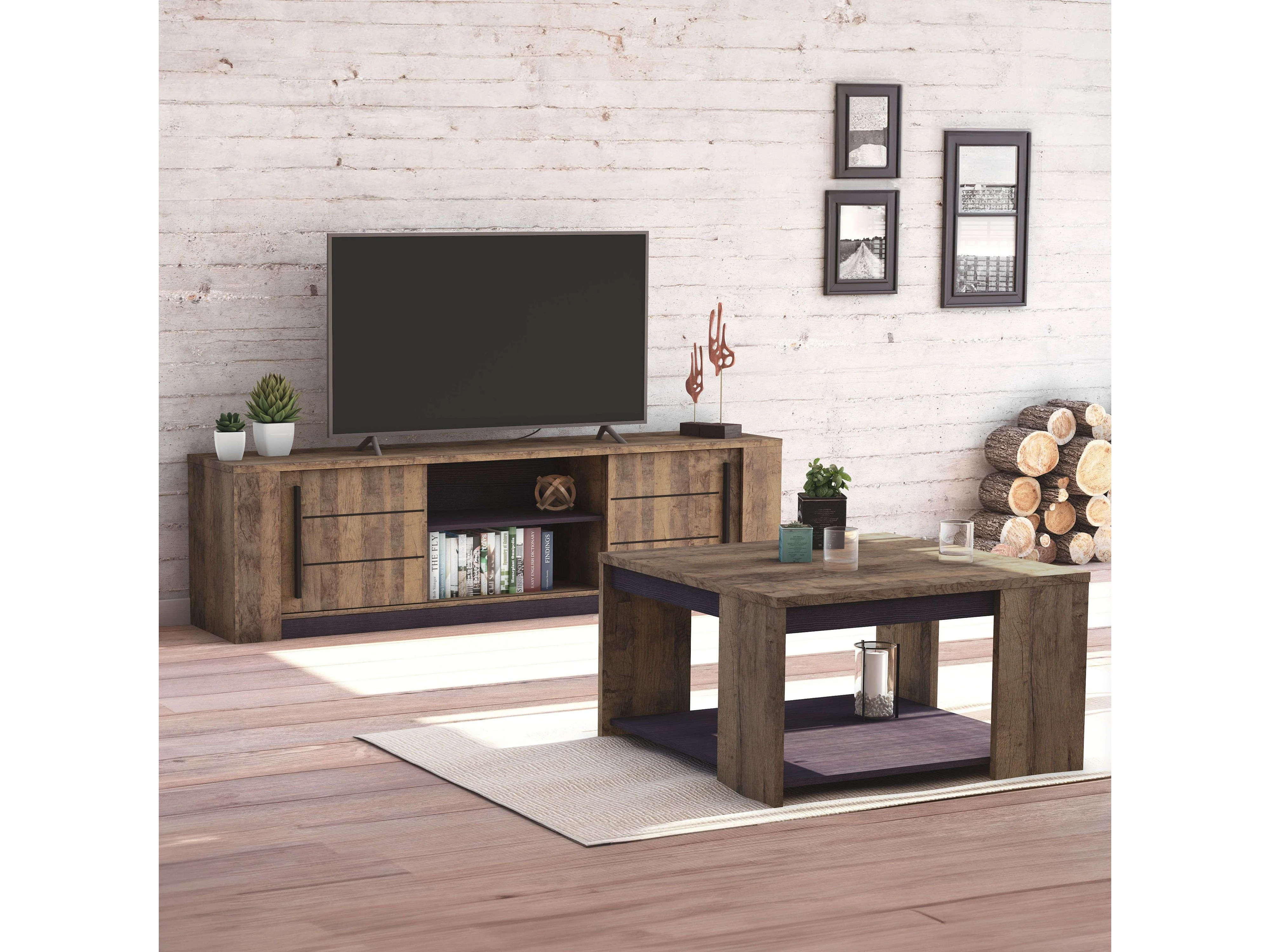 Conjunto de 3 móveis para sala de estar da coleção MILO. Cor carvalho. Estilo industrial.