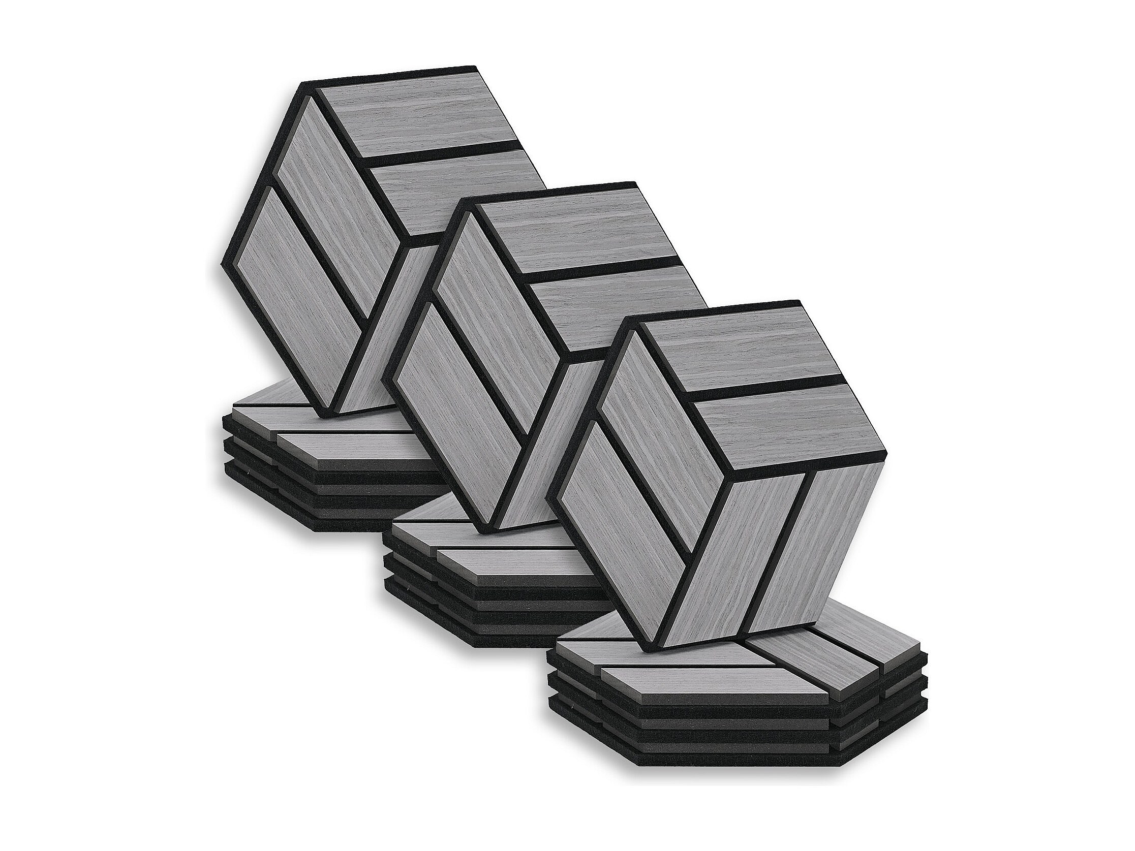 Painéis Acústicos 30x26 cm Cinza Hexágono Favo de Mel