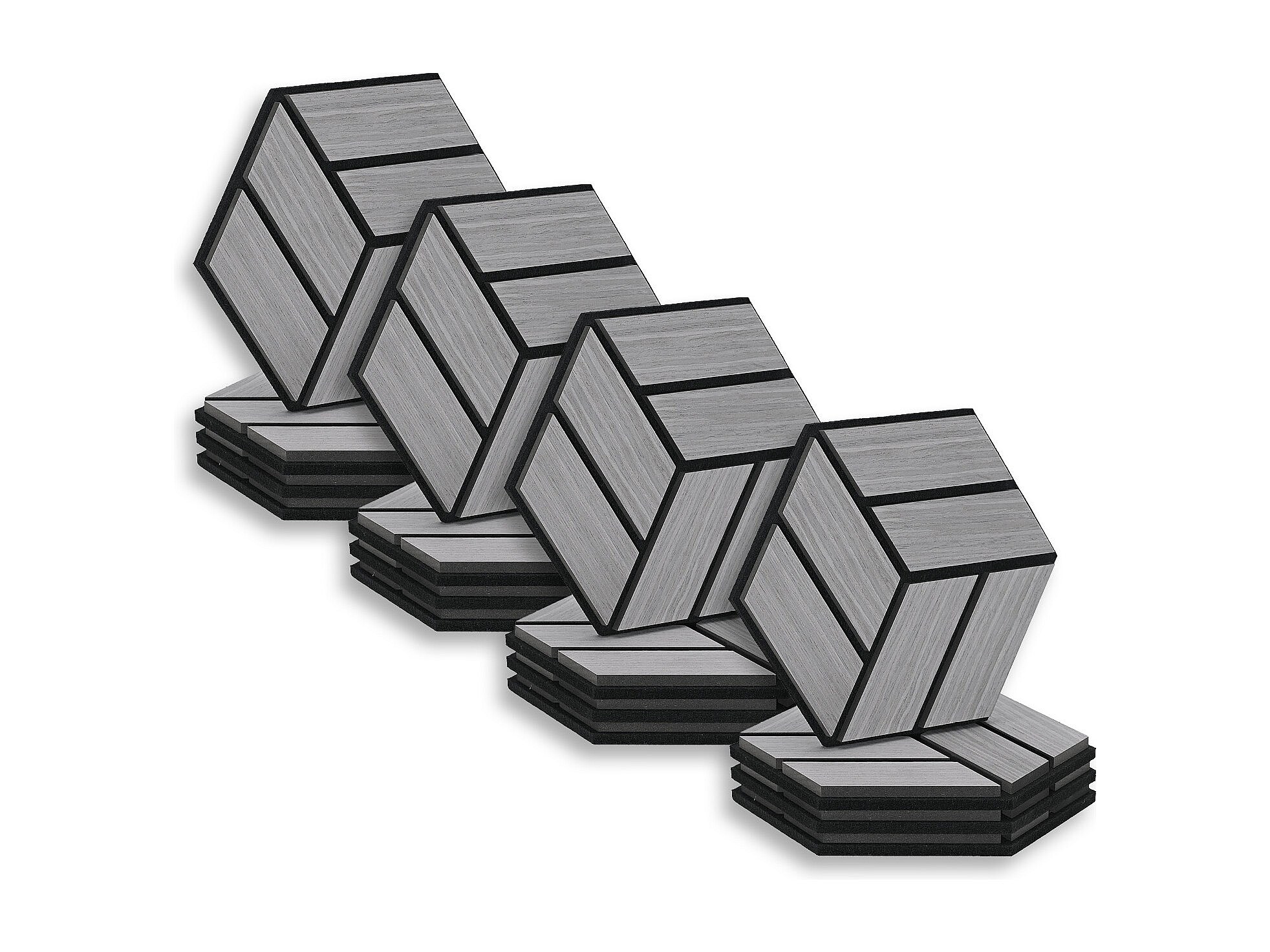 Painéis Acústicos de Parede 30x26 cm Cinza Hexágono Colmeia Conjunto 16 Peças 3D
