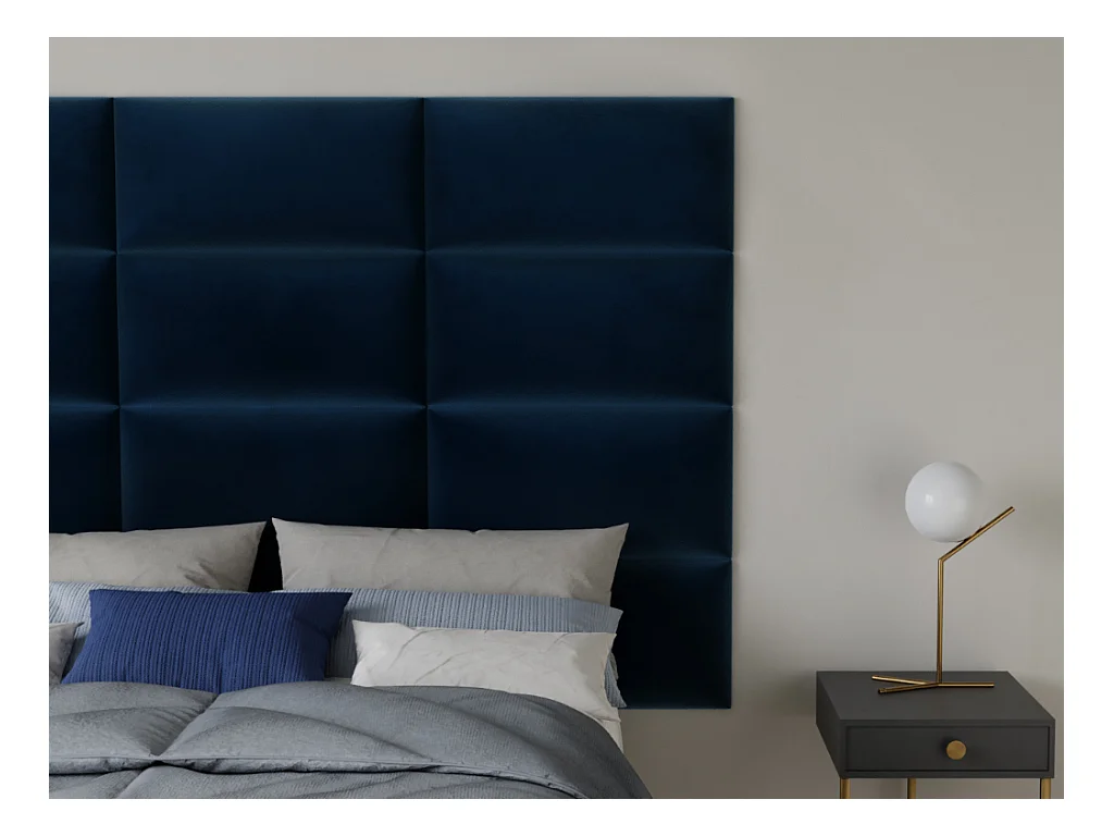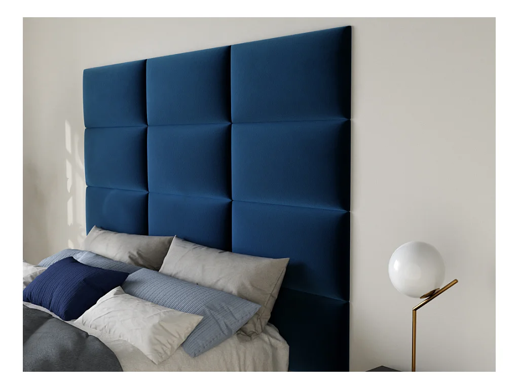 Painéis de parede cabeceira de cama de 180 cm em veludo cor azul - BONTE