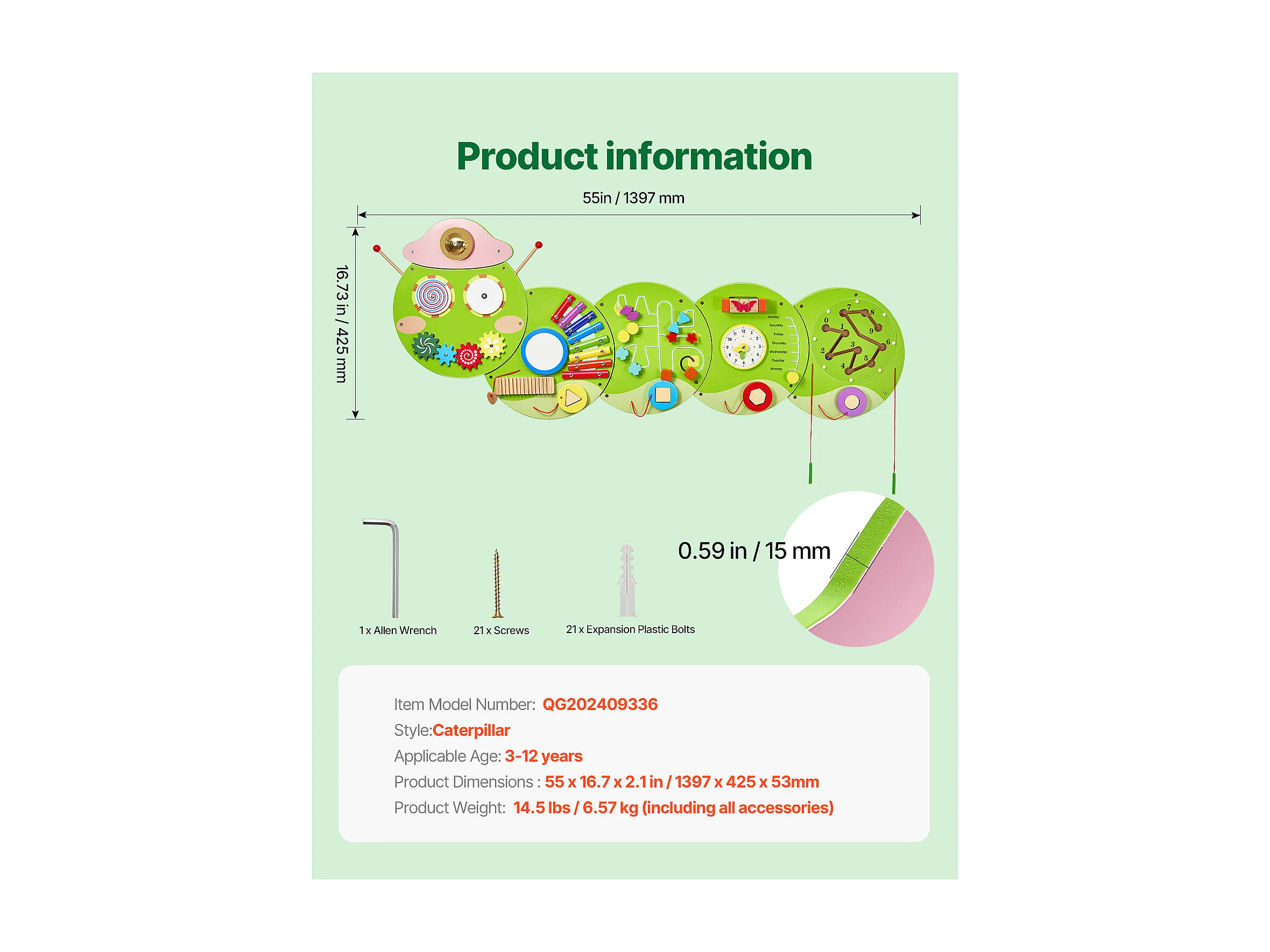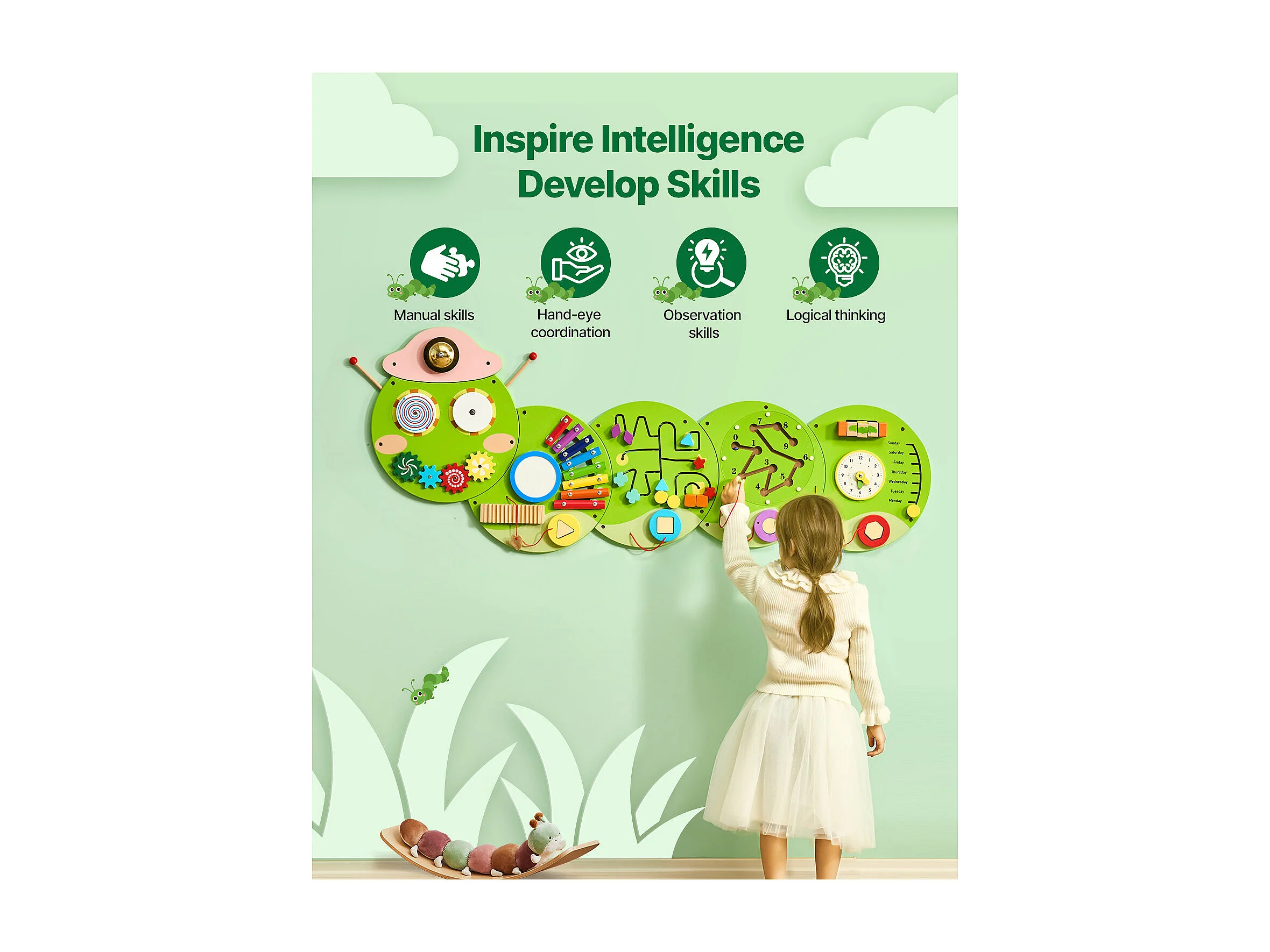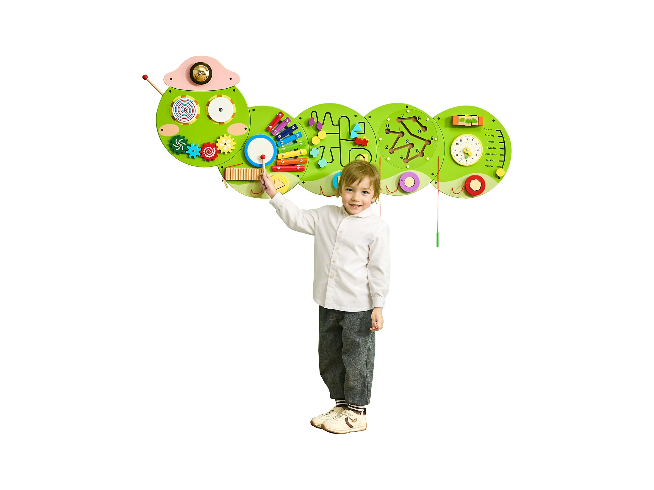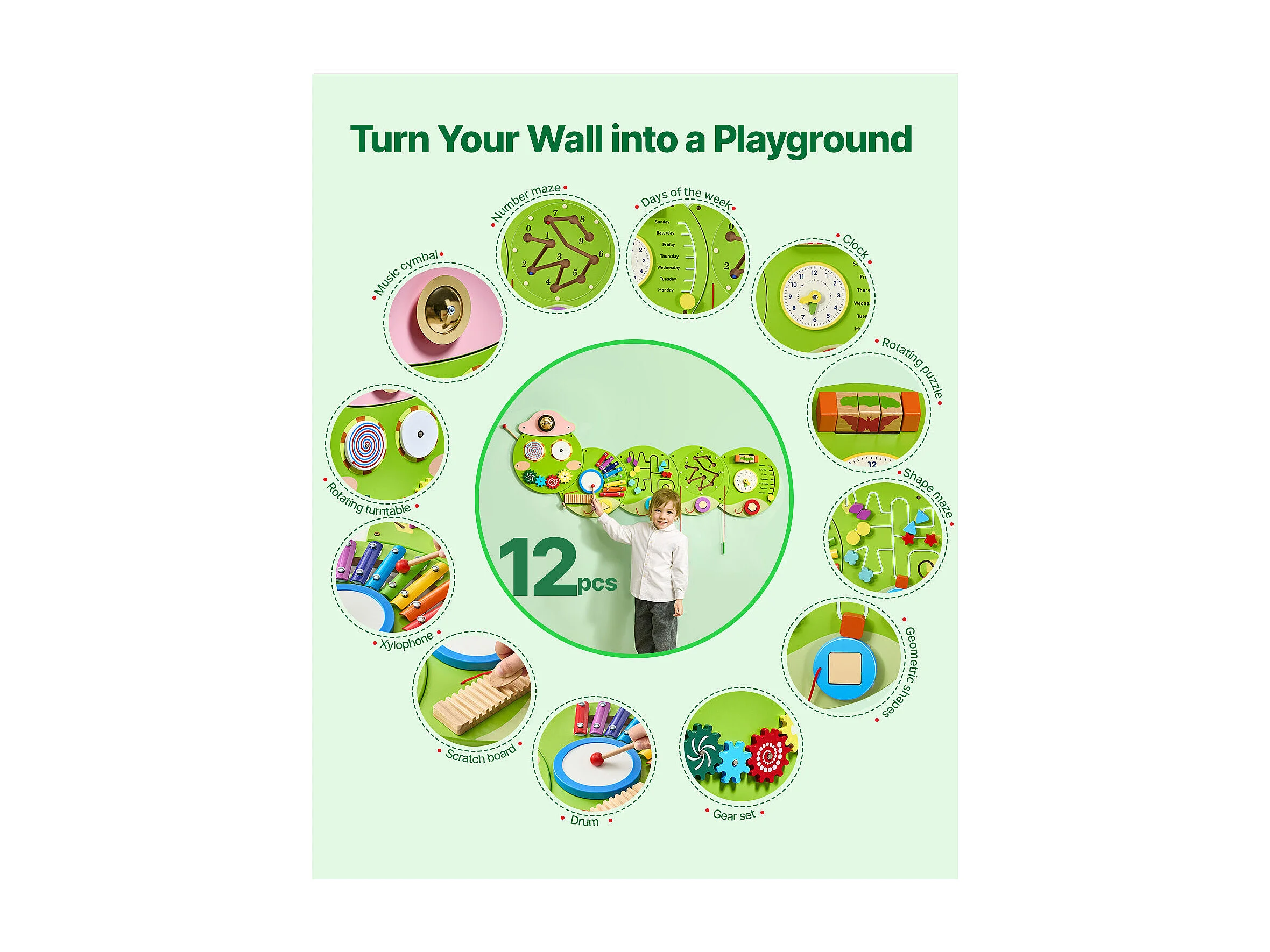 Painéis de Parede SucceBuy de Atividades Caterpillar com 12 Funções de Jogo Sensorial, Brinquedo Sensorial Montessori para Crianças 3-12 Anos