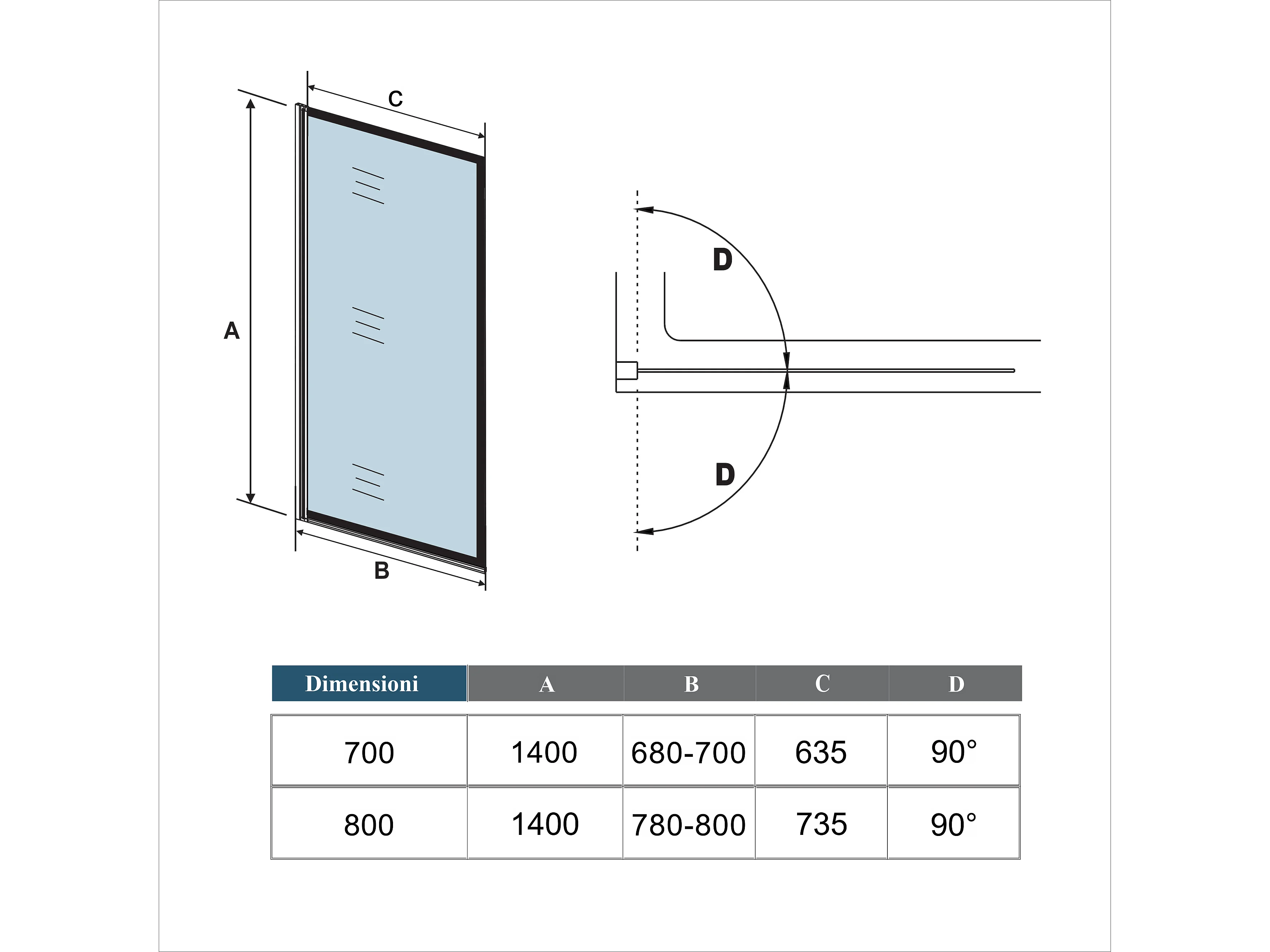 Painel de Banheira Dobrável 1 Painel Giratório Vidro Temperado 4mm com Cinza Fosco Tamanho do Perfil: (790-800)x1400mm