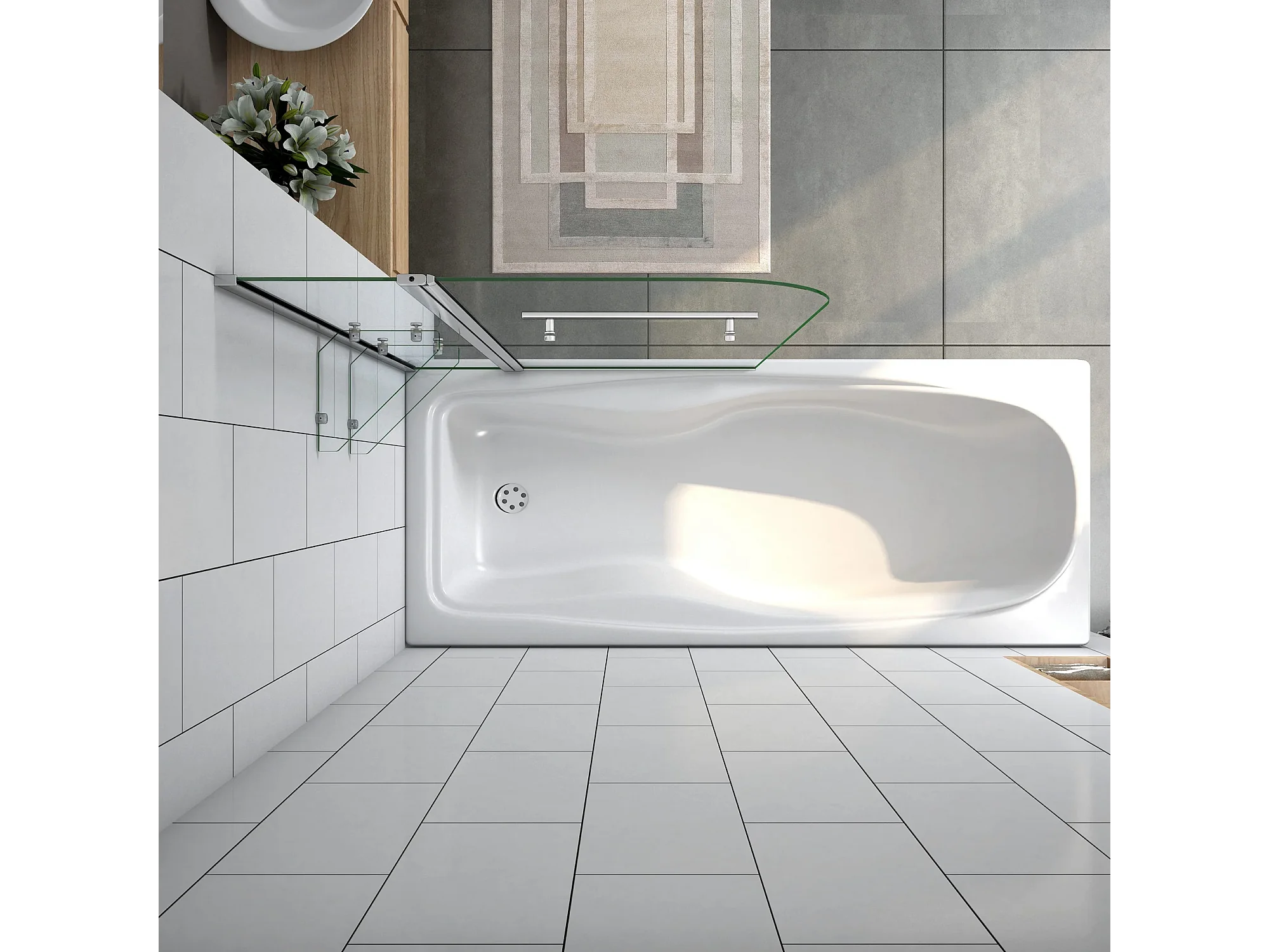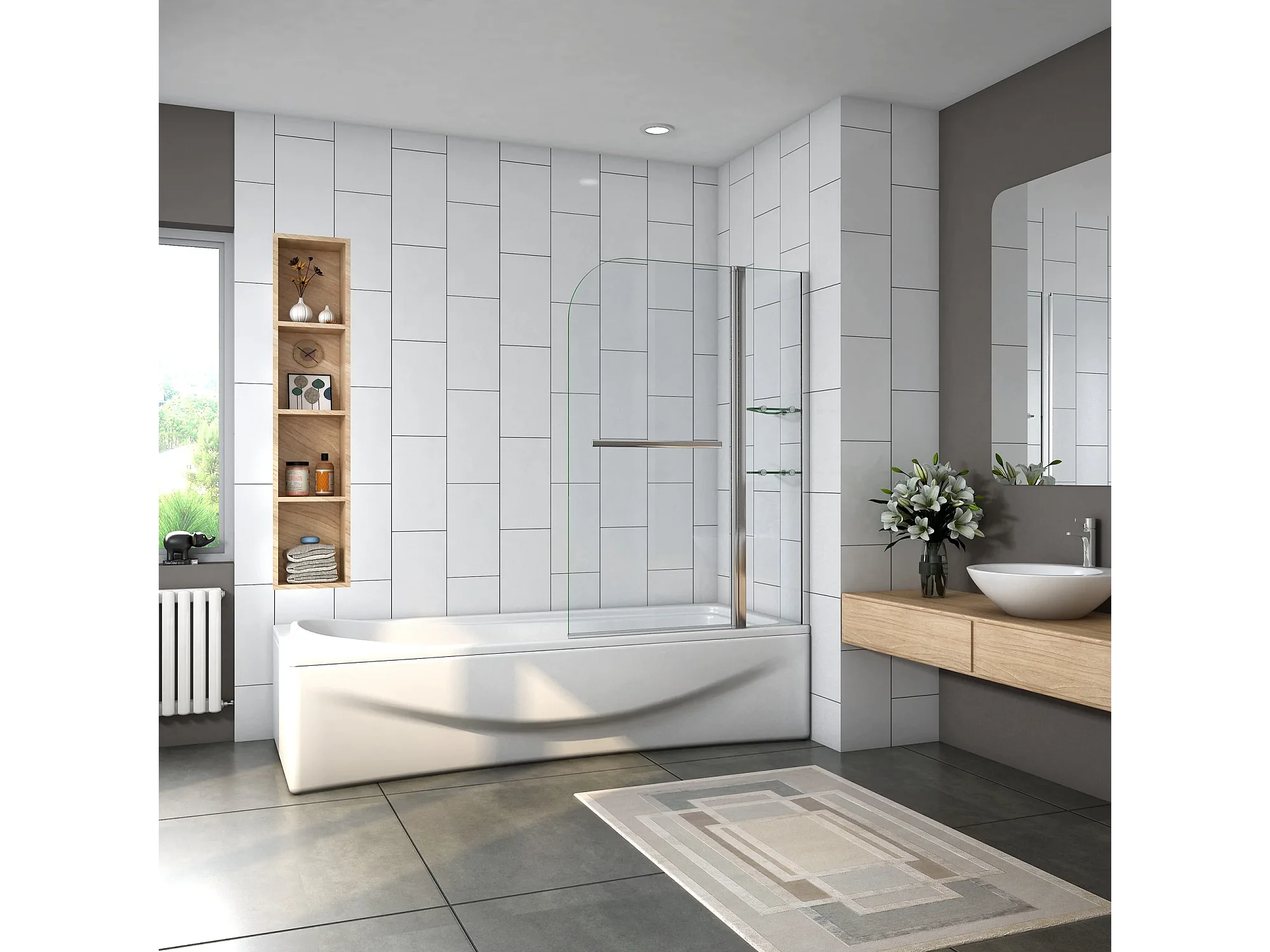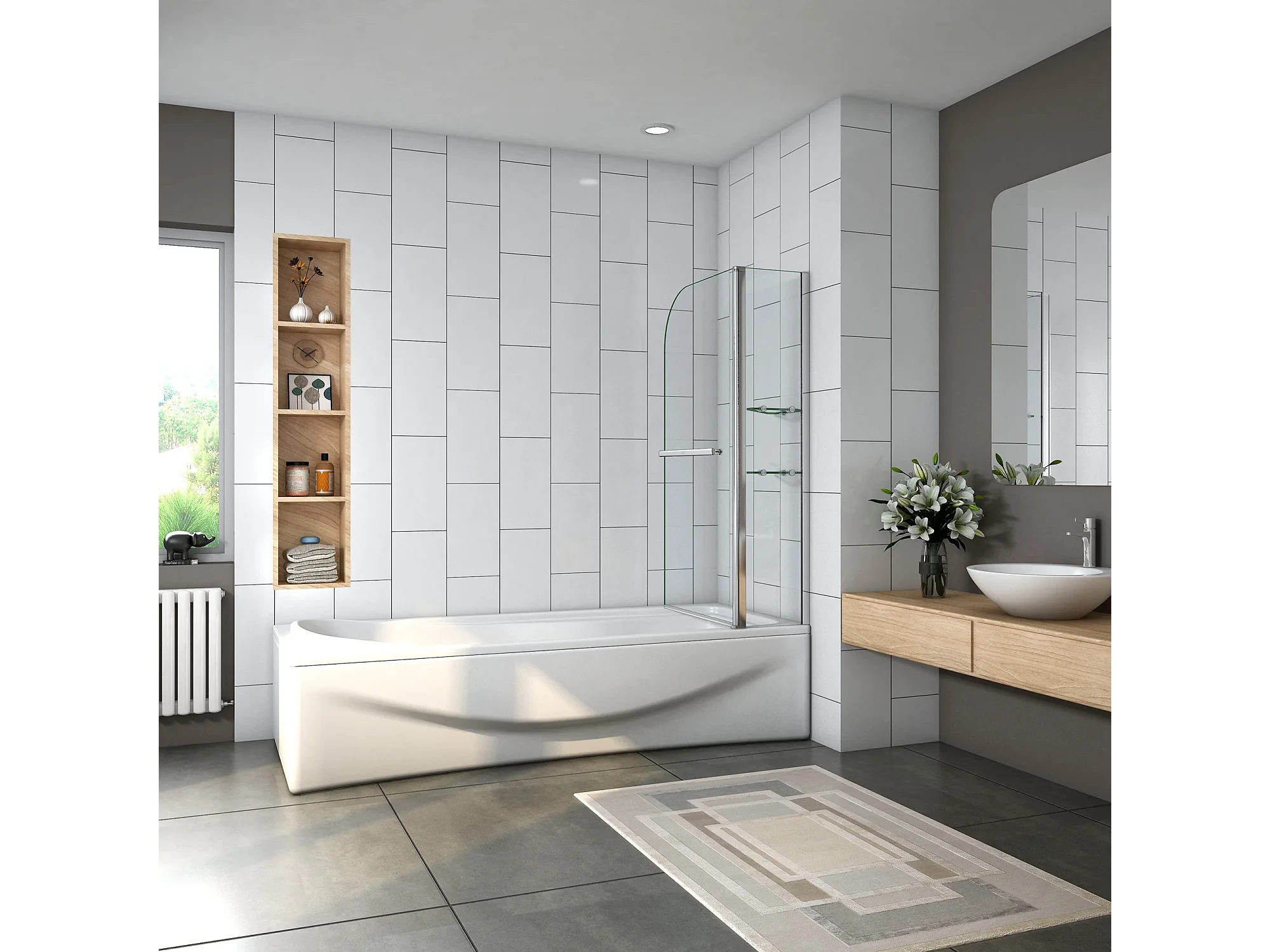 Painel de Banheira Dobrável Vidro Temperado 6 mm com 2 Prateleiras e Toalheiro Tamanho: (995-1000)x1400mm