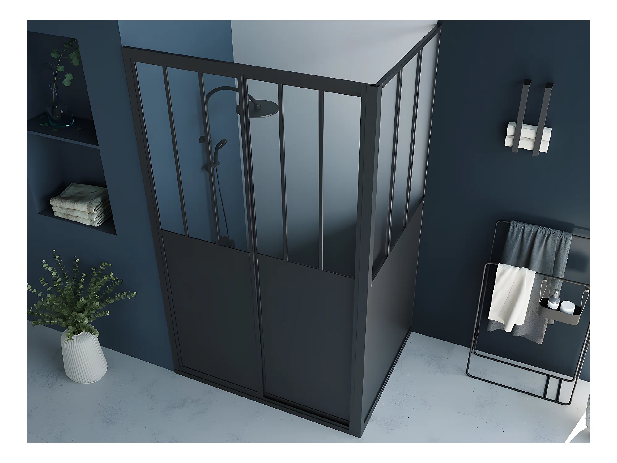 Painel de duche com porta de correr preto mate estilo industrial 120 x 80 x 195 cm - URBANIK