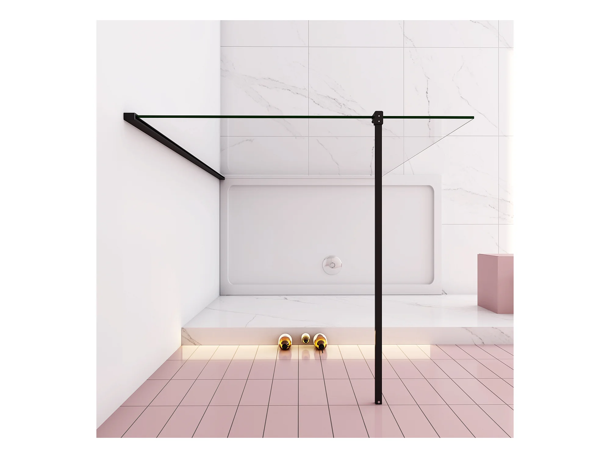 Painel de duche Fixo de folha única Vidro Anti-calcário 8mm com uma Barra de 90cm Perfil Preto fosco Tamanho(108-110)x200cm-AICA