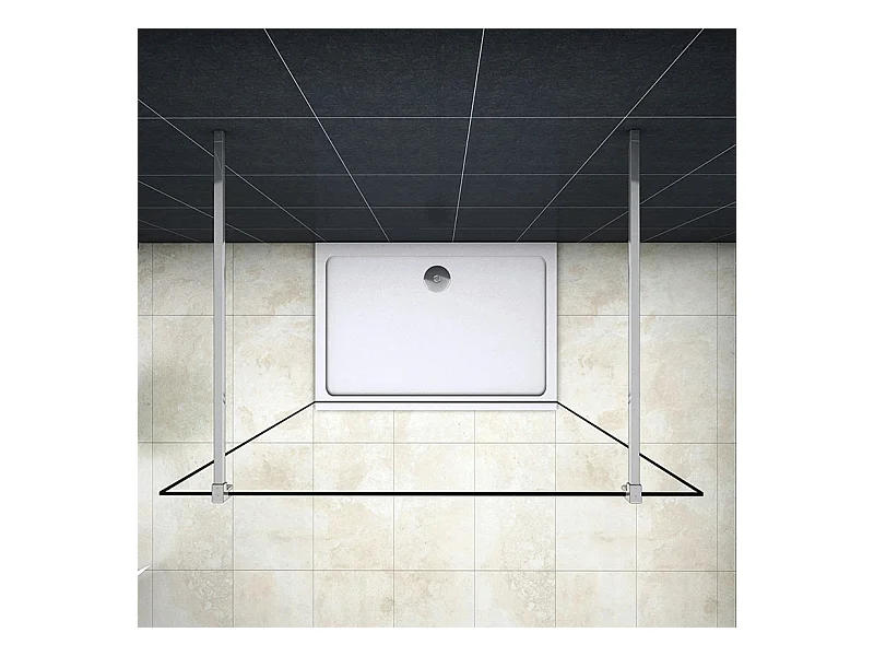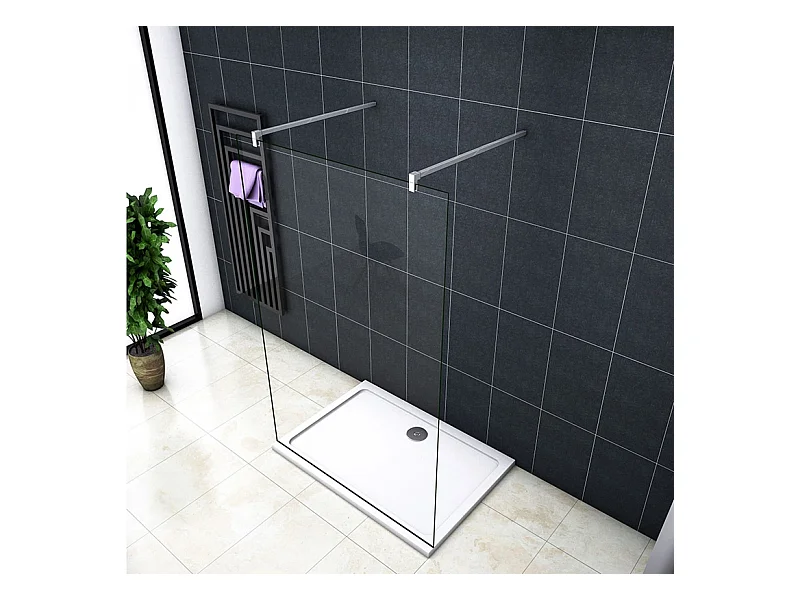 Painel de duche Fixo 1 folha Vidro Anti-calcário 8mm 47x200cm com Duas barras 140cm-AICA