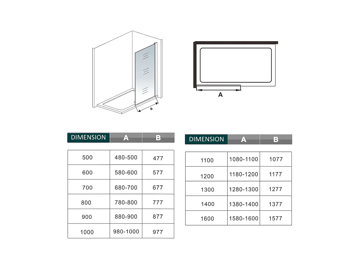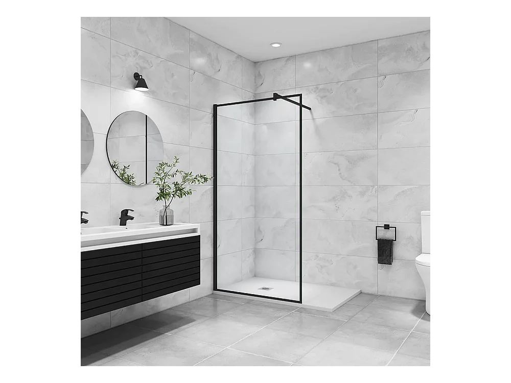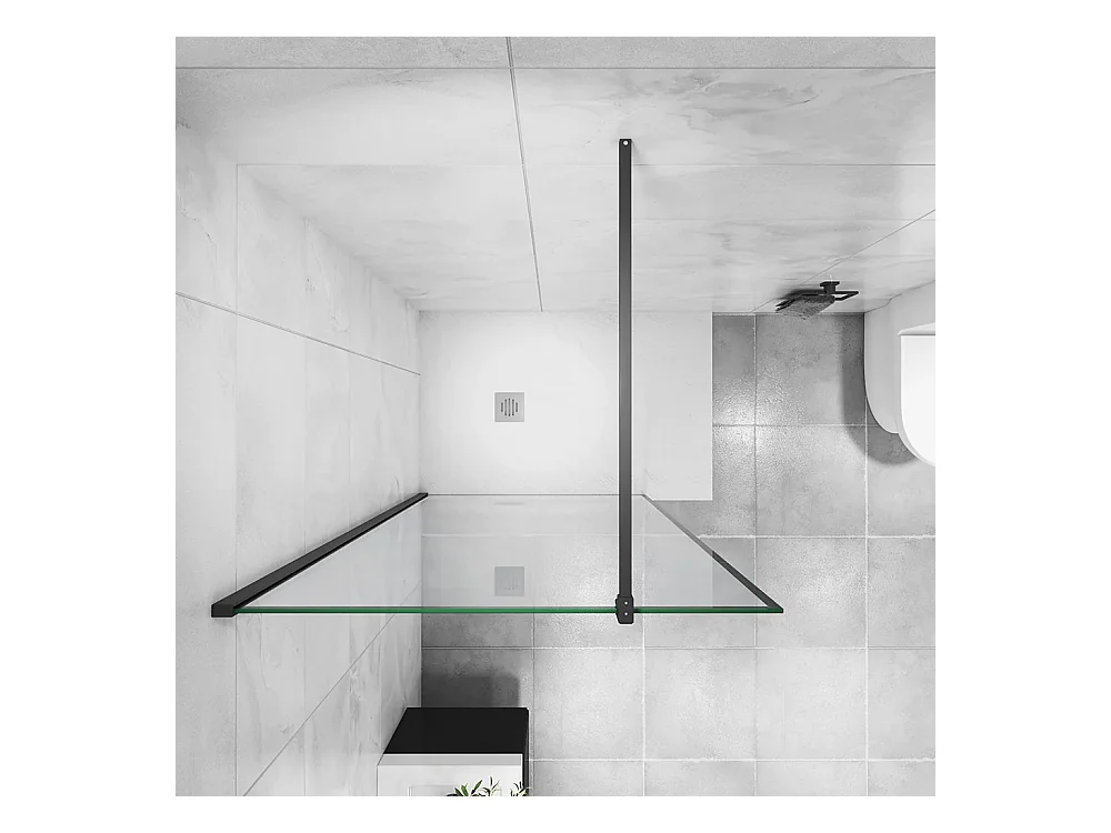 Painel de duche Fixo Borda serigráfica preta Vidro Anti-calcário 8mm com Barra 90cm Perfil Preto fosco (138-140)x200cm-AICA