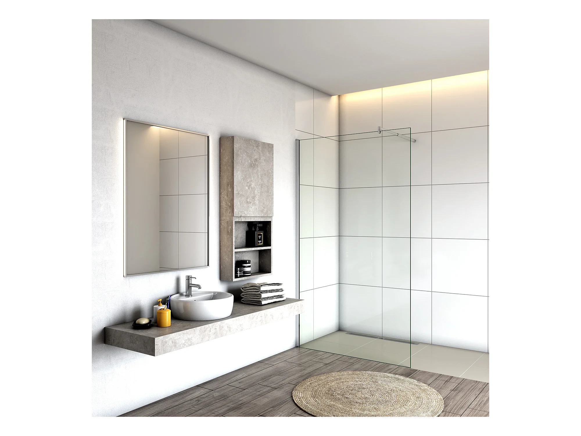 Painel de duche Fixo Vidro temperado de 8 mm com Tratamento anticalcário com uma Barra de 90cm Perfil cromado (78-80)x200cm-AICA