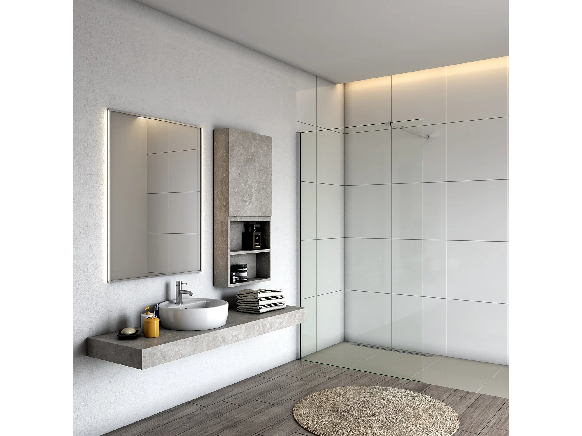 Painel de duche Fixo Vidro temperado de 8 mm com Tratamento anticalcário com uma Barra de 90cm Perfil cromado (138-140)x200cm-AICA