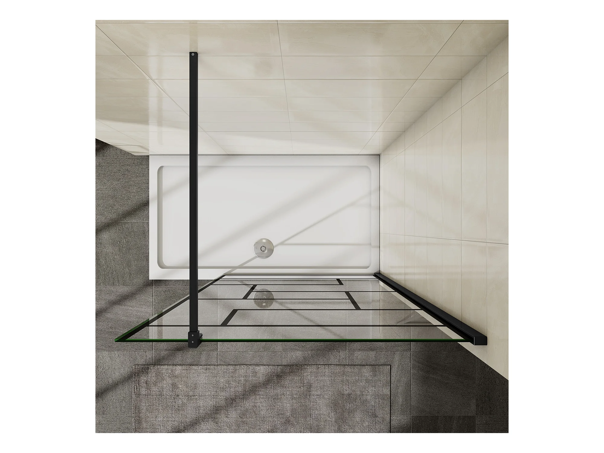 Painel de duche Fixo serigrafada com linha preta Vidro temperado Anticalcário 8mm com Barra 90cm Perfil Preto fosco (98-100)x200cm-AICA