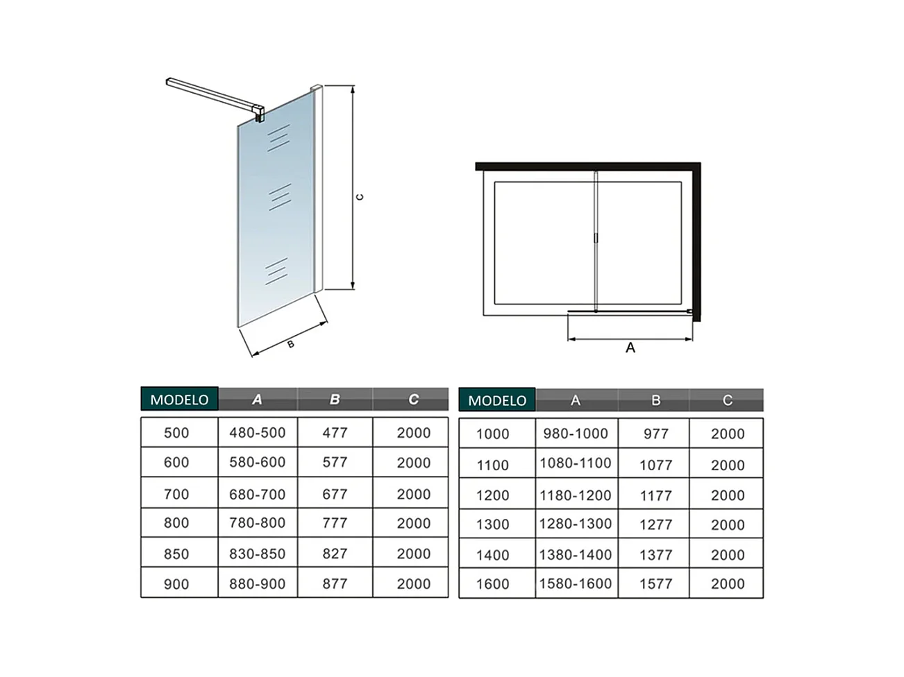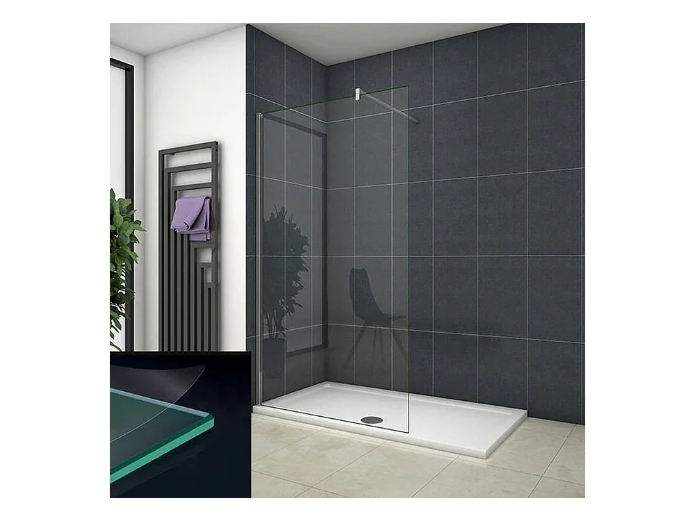 Painel de duche Fixo Vidro temperado de 8 mm com Tratamento anticalcário com uma Barra de 90cm Perfil cromado (88-90)x200cm-AICA