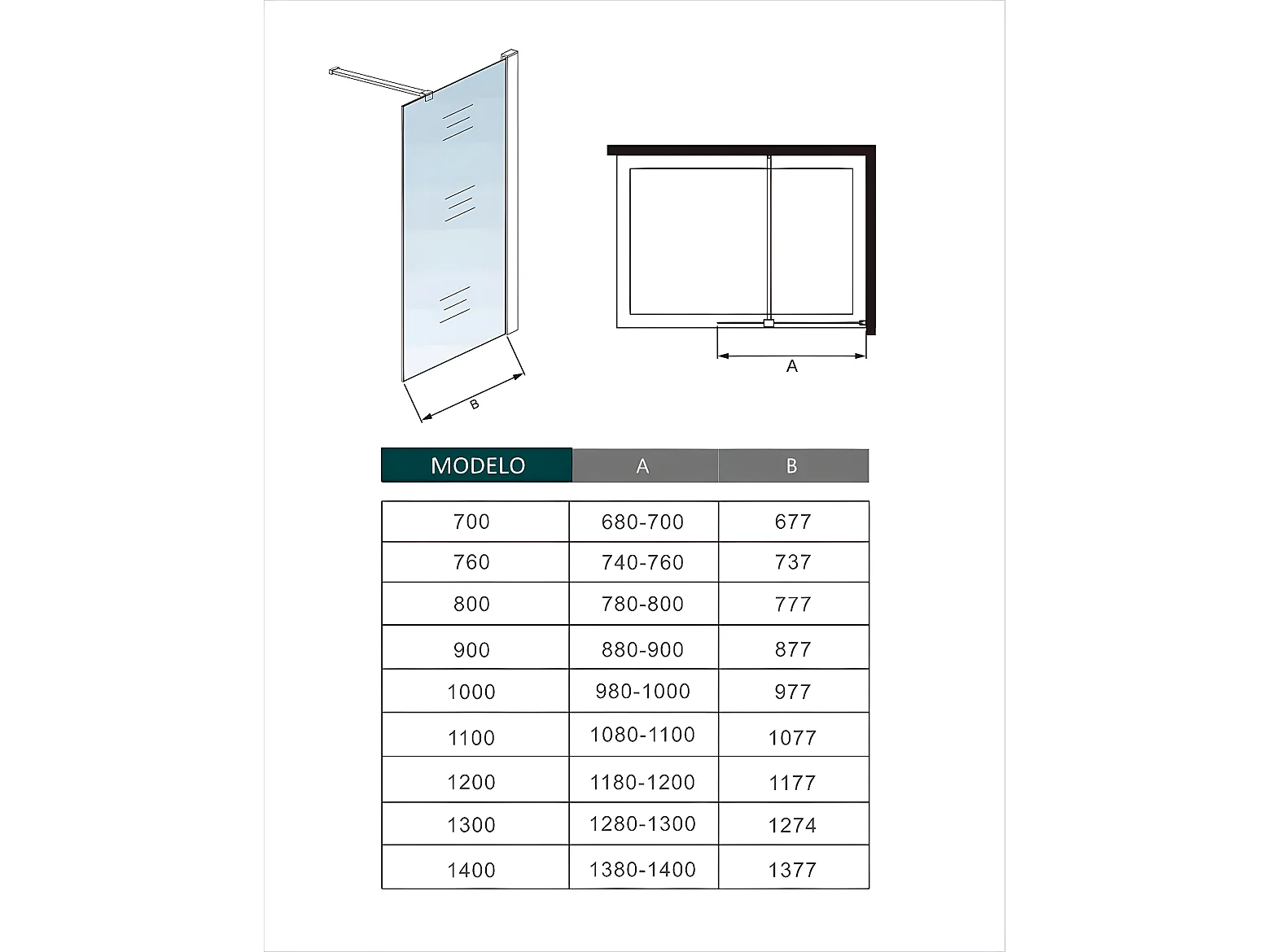 Painel de duche Fixo Vidro temperado de 8 mm com Tratamento anticalcário com uma Barra de 90cm Perfil cromado (118-120)x200cm-AICA