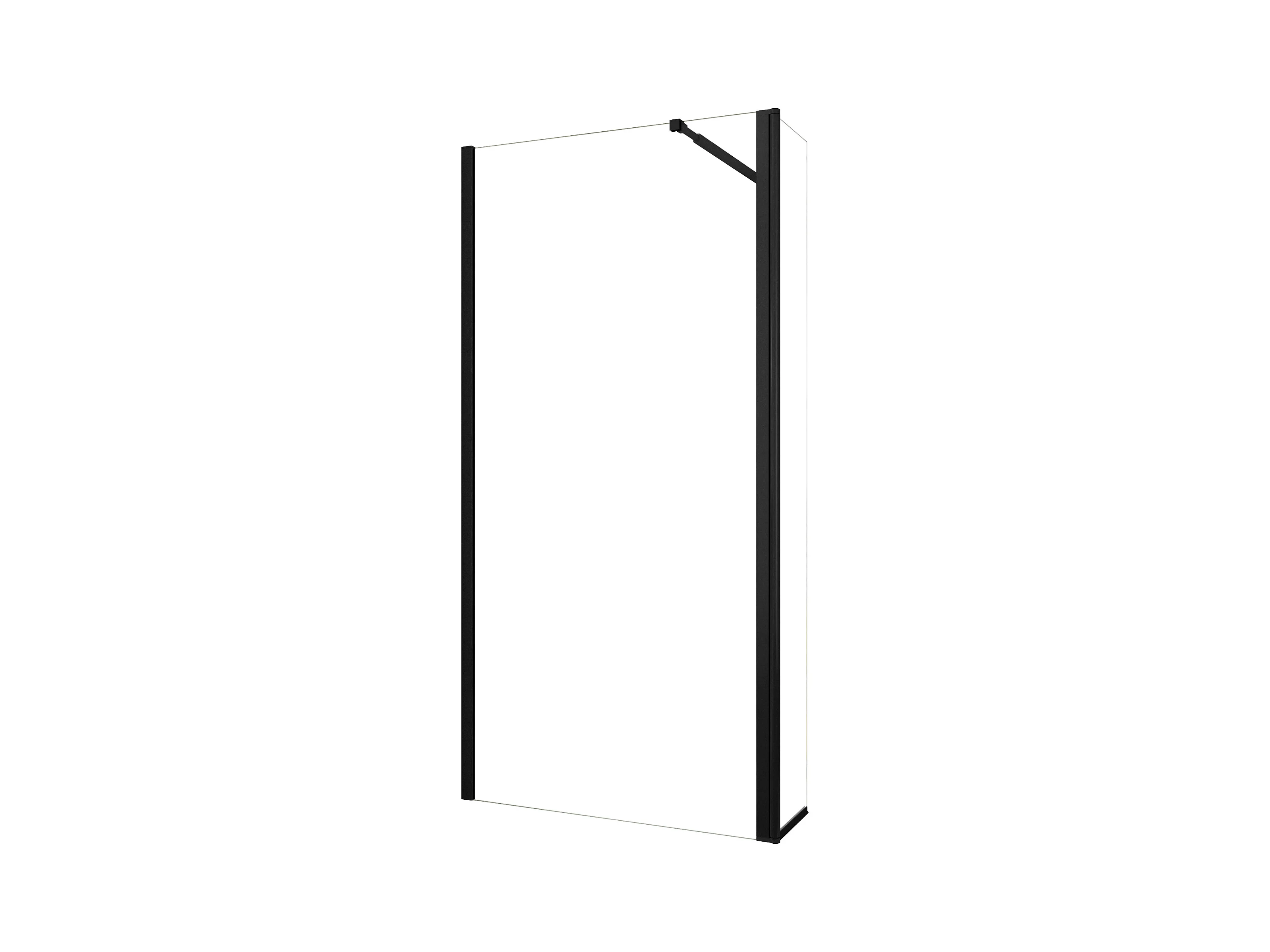 Painel de duche Movível 2 folhas Painel fixo+Lado giratório Vidro 8mm Anti-calcário com Barra Preta fosca 90cm Tamanho[(53.9-55.9)+40]x200cm-AICA