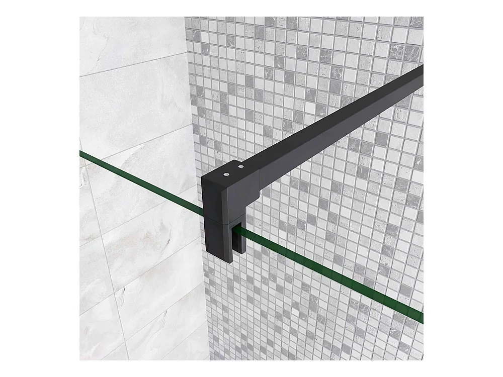 Painel de duche Movível Linha preta serigrafia 2 folhas Vidro 8mm Anticalcário com Barra Preta fosca 140cm Tamanho[(123.9-125.9)+30]x200cm-AICA
