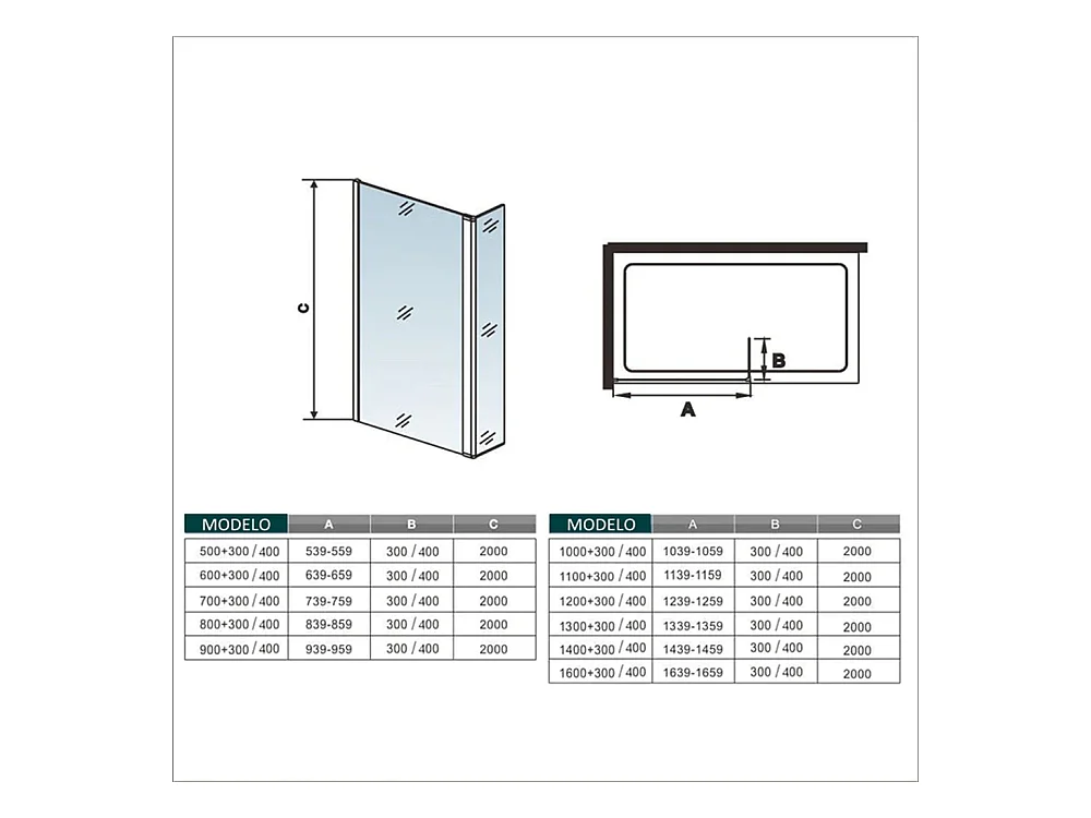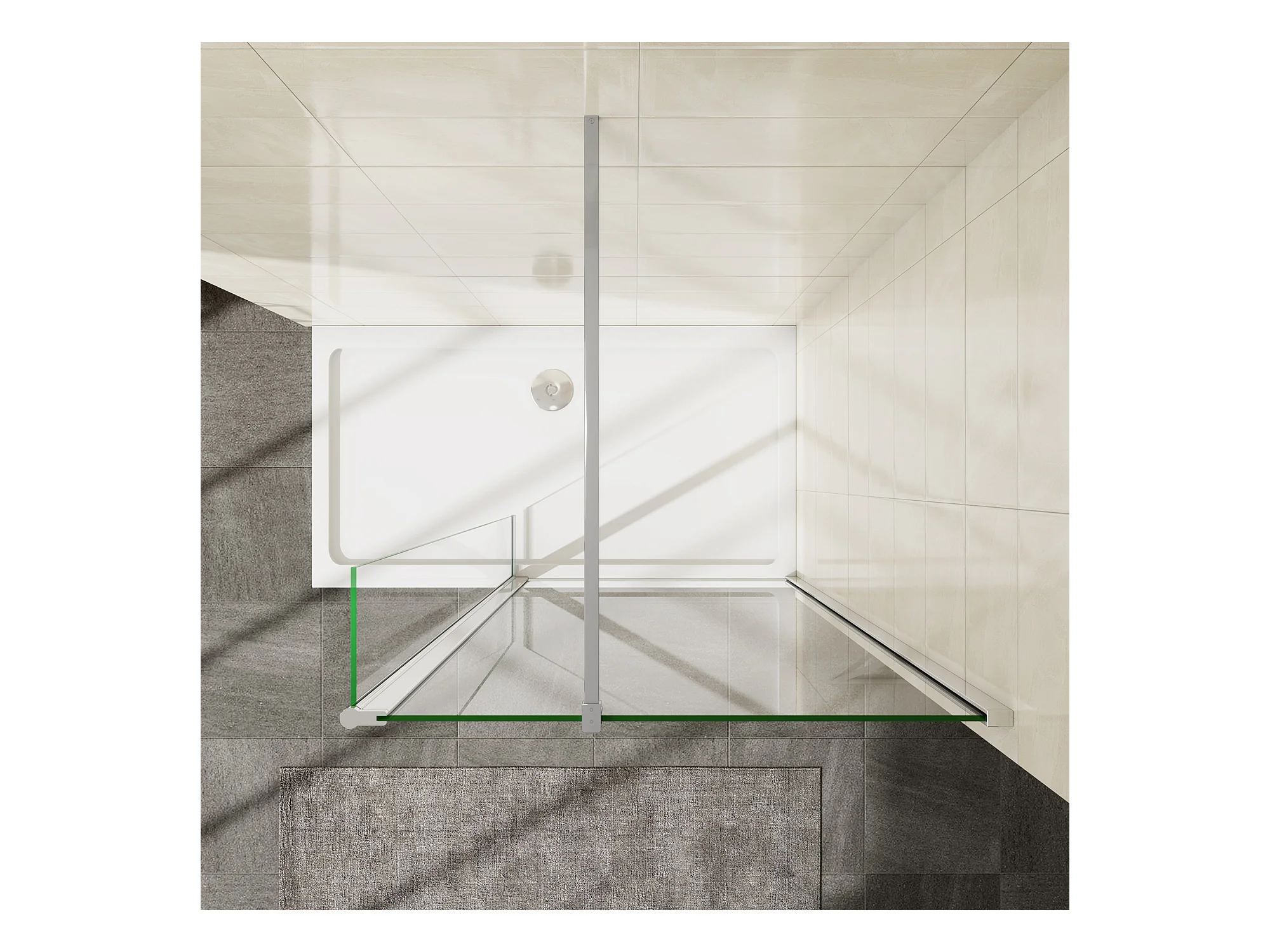 Painel de duche Movível 2 folhas um Painel fixo+um lado giratório Vidro 8mm Anti-calcário com Barra 140cm Tamanho[(163.9-165.9)+30]x200cm-AICA