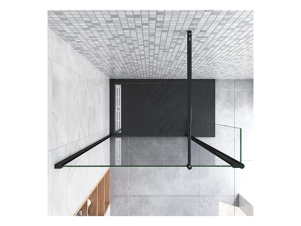 Painel de duche Movível Linha preta serigrafia 2 folhas Vidro 8mm Anticalcário com Barra Preta fosca 140cm Tamanho[(123.9-125.9)+30]x200cm-AICA