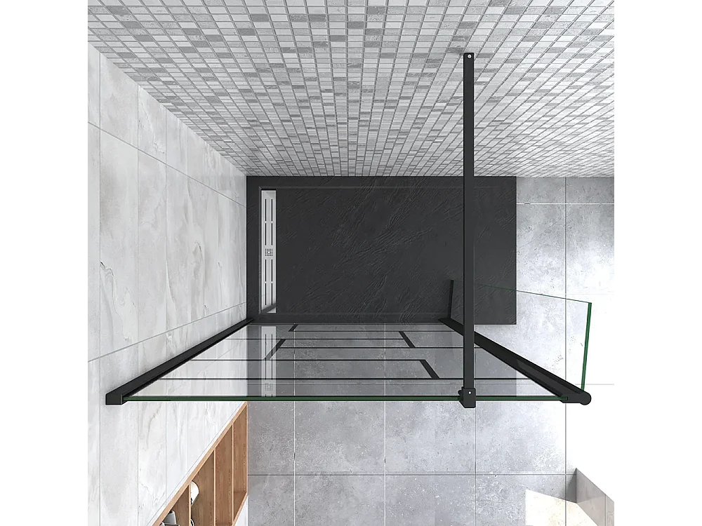 Painel de duche Movível Linha preta serigrafia 2 folhas Vidro 8mm Anticalcário com Barra Preta fosca 140cm Tamanho[(113.9-115.9)+40]x200cm-AICA