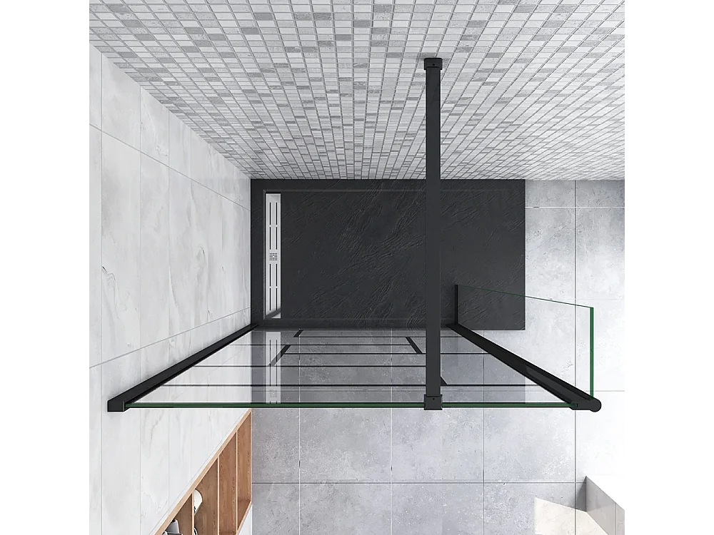 Painel de duche Movível Linha preta serigrafia 2 folhas Vidro 8mm Anticalcário com Barra1 Preta fosca 90cm Tamanho[(123.9-125.9)+30]x200cm-AICA