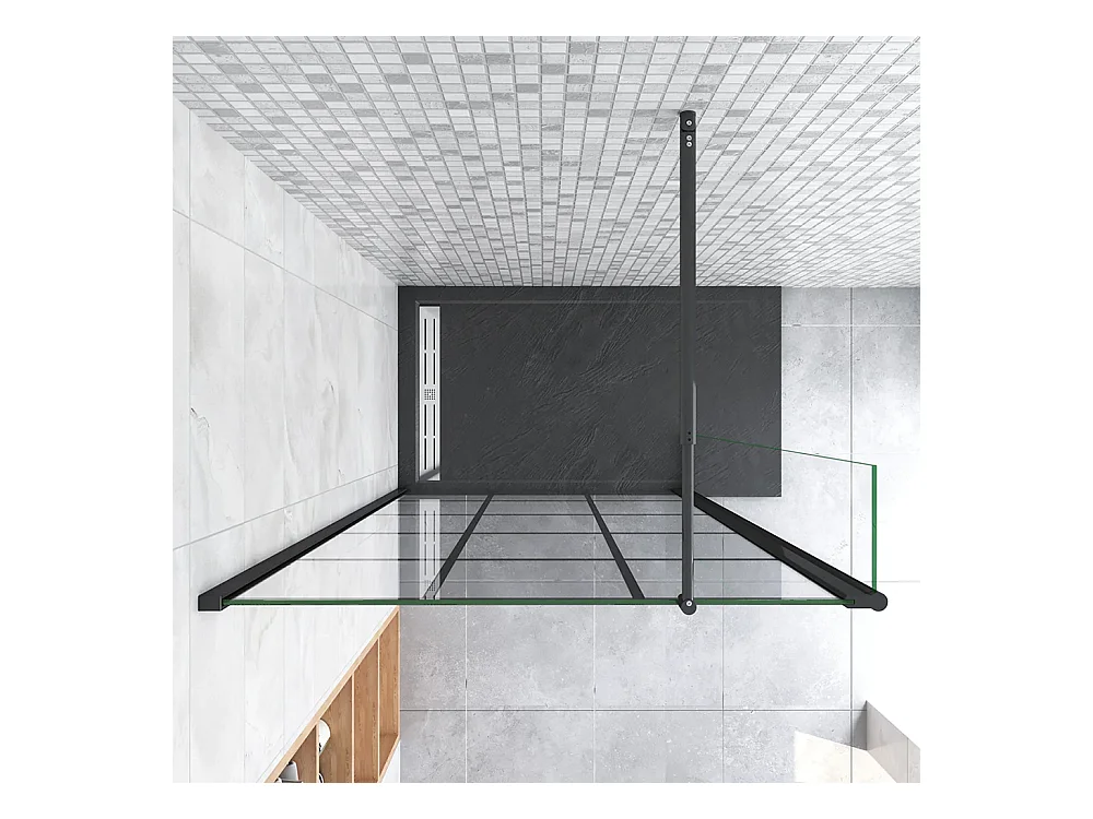 Painel de duche Movível Linha preta serigrafia 2 folhas Vidro 8mm Anticalcário com Barra Preta fosca 70-120cm Tamanho[(113.9-115.9)+30]x200cm-AICA