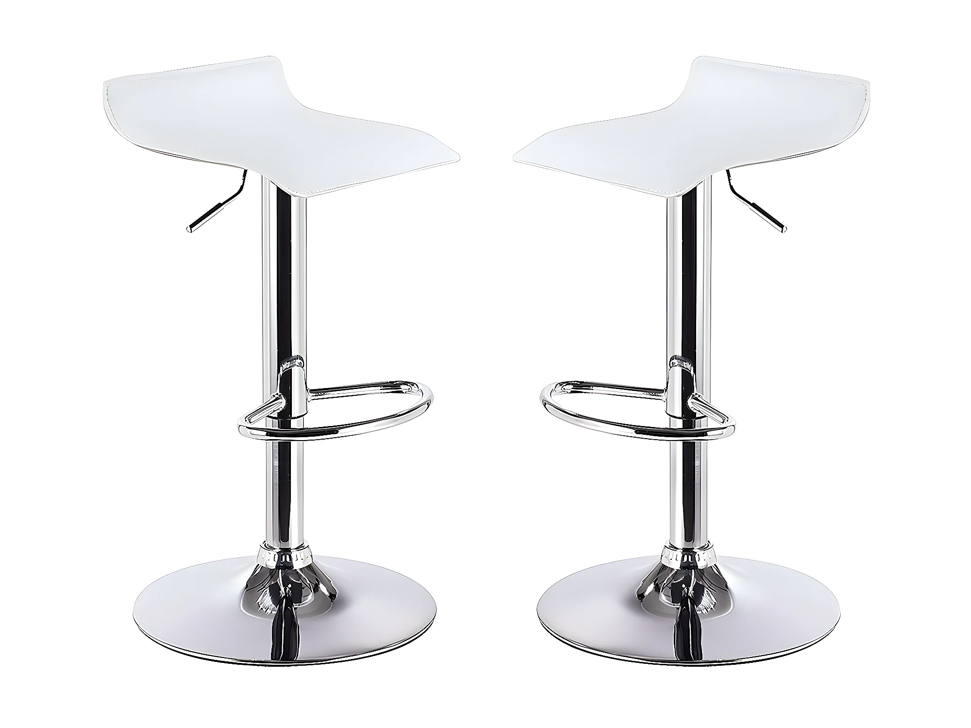 Lot de 2 tabourets de bar réglables en hauteur 77-97 cm – Assise simili cuir PU blanc, pied en métal gris, diamètre 40 cm