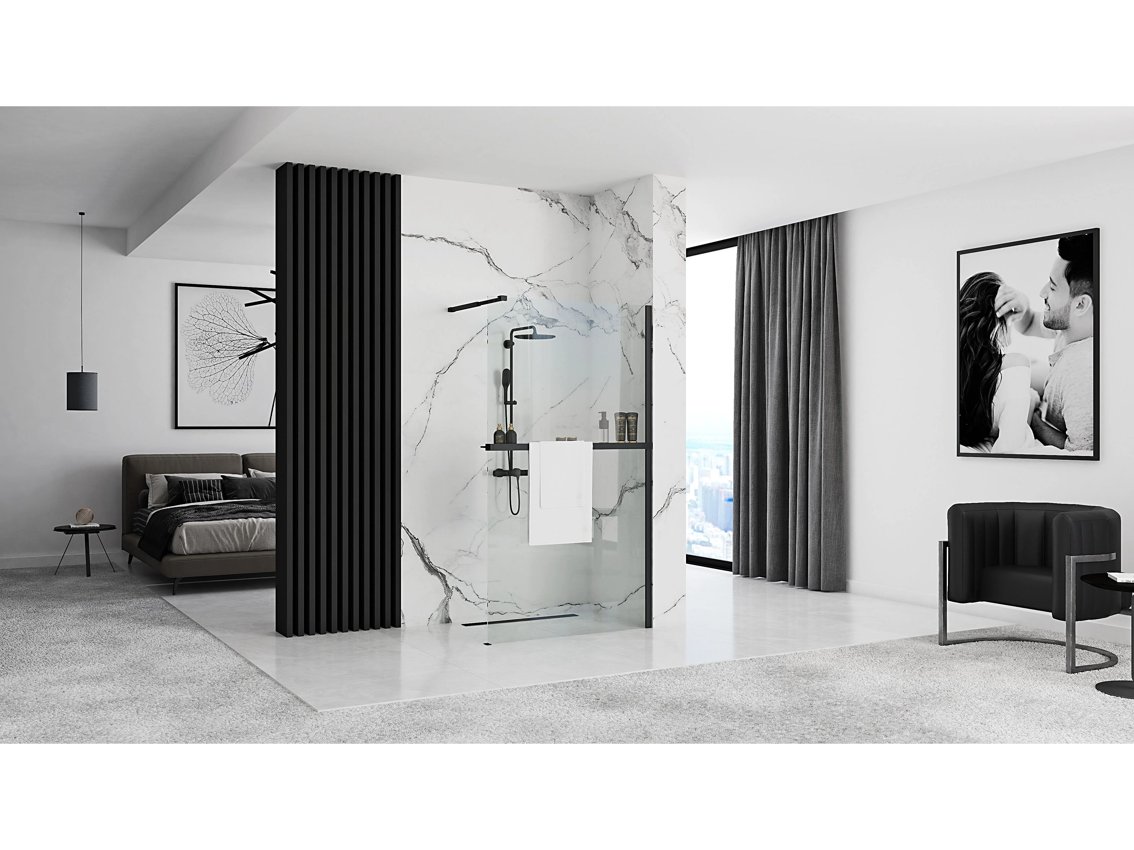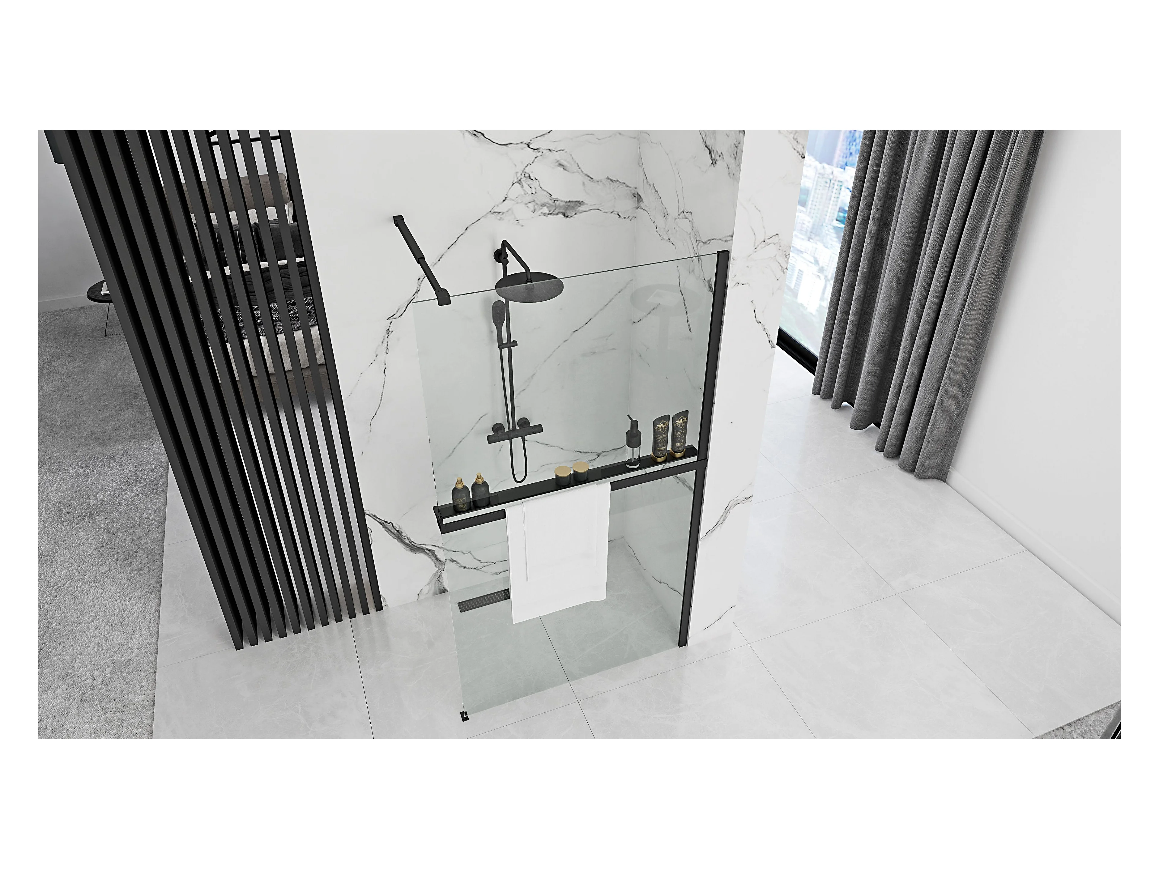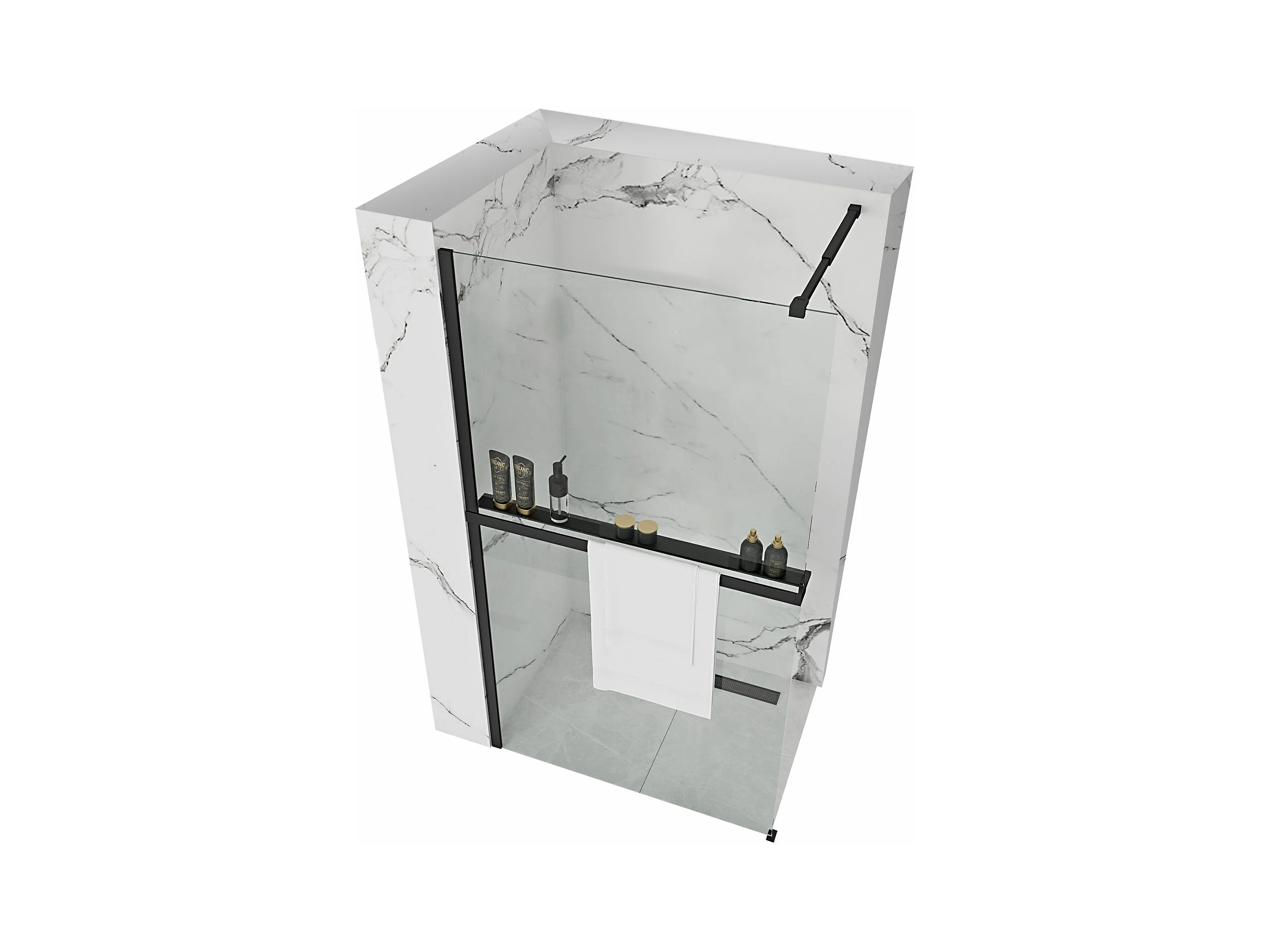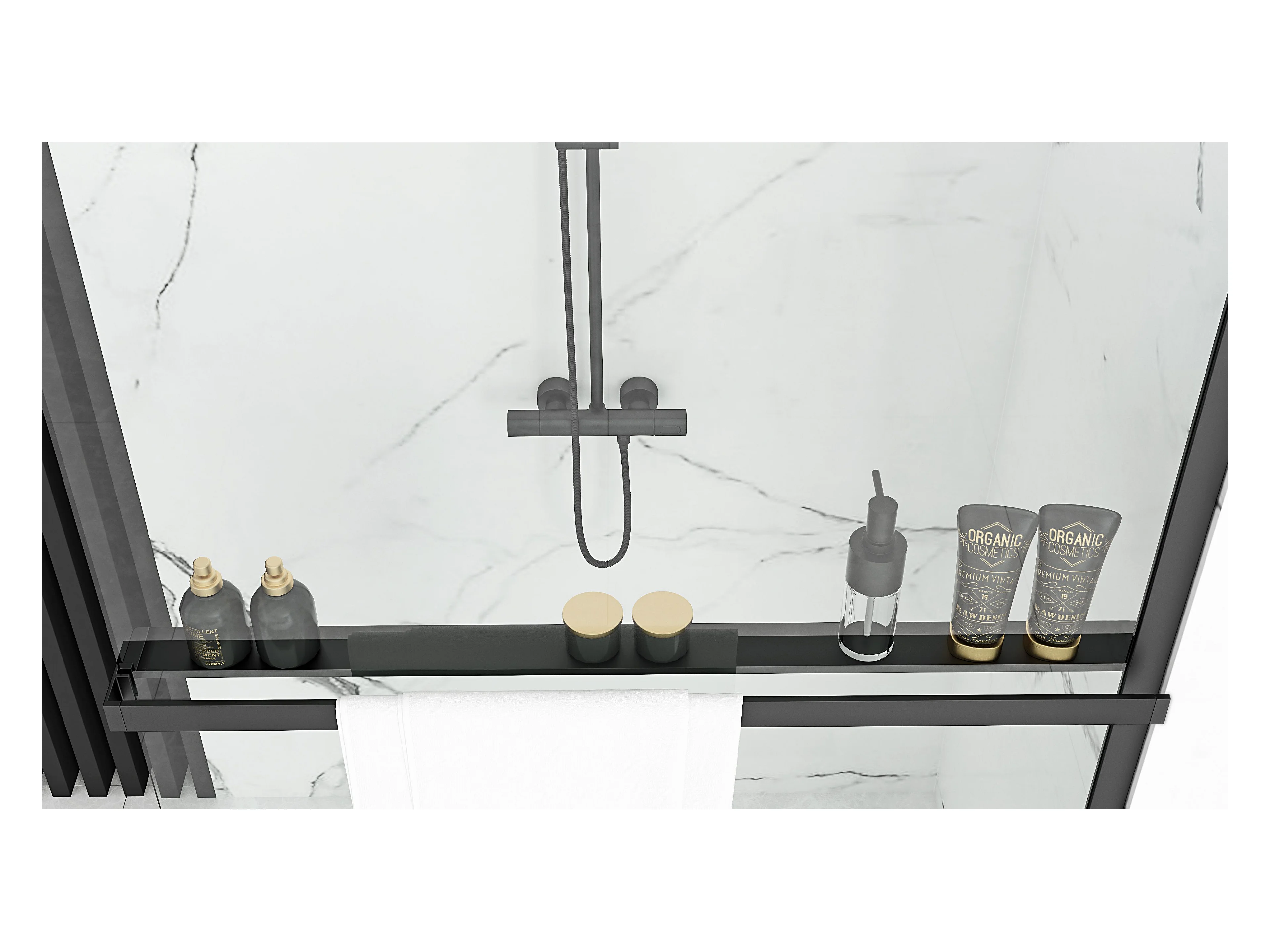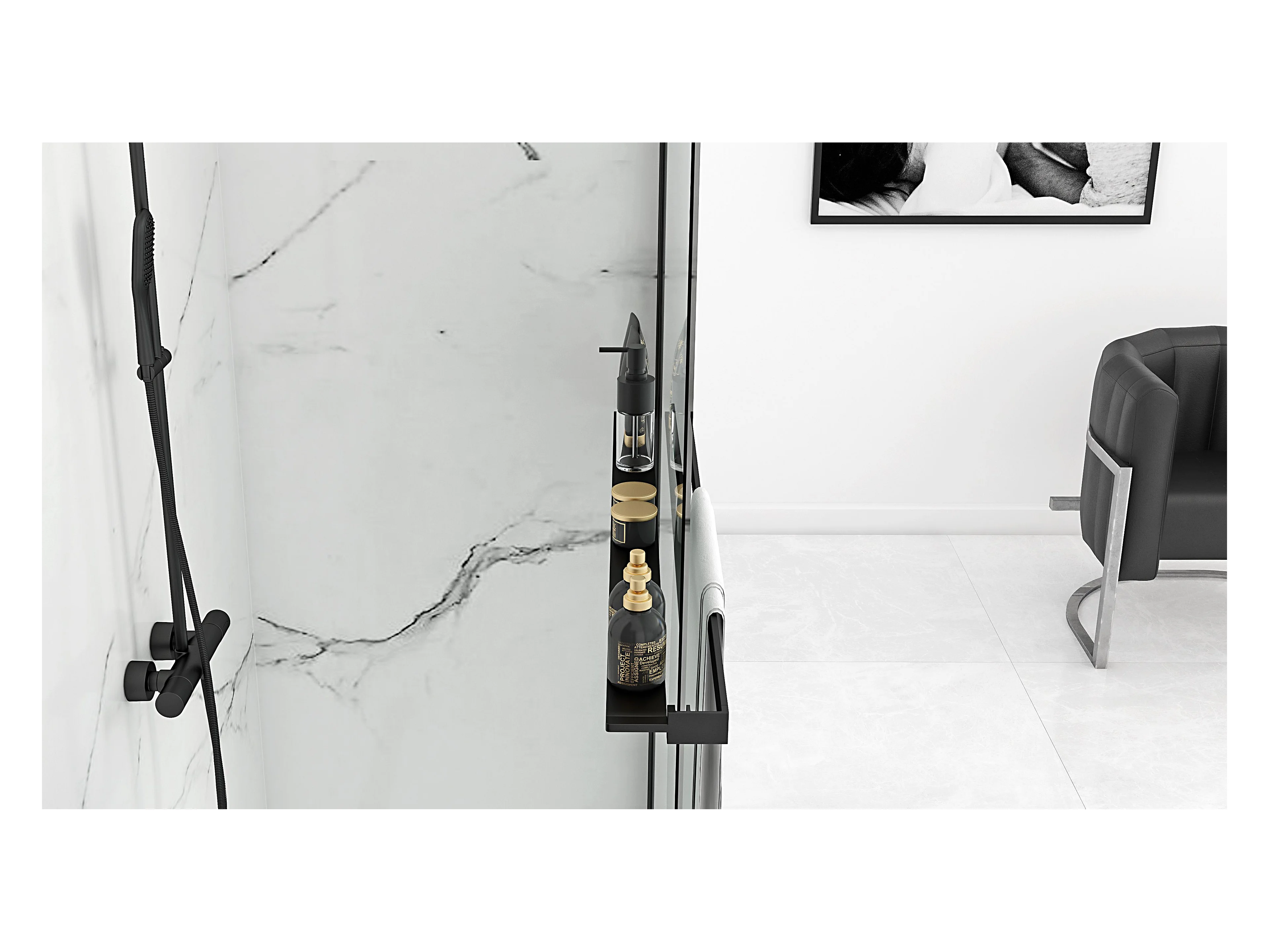 Parede De Chuveiro Rea Aero 120 Black + Prateleira E Cabide Evo