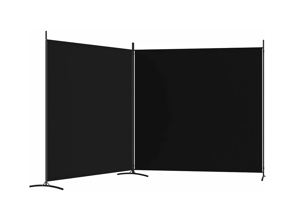 Parede divisória 2 painéis Preto 348x180 cm Tecido