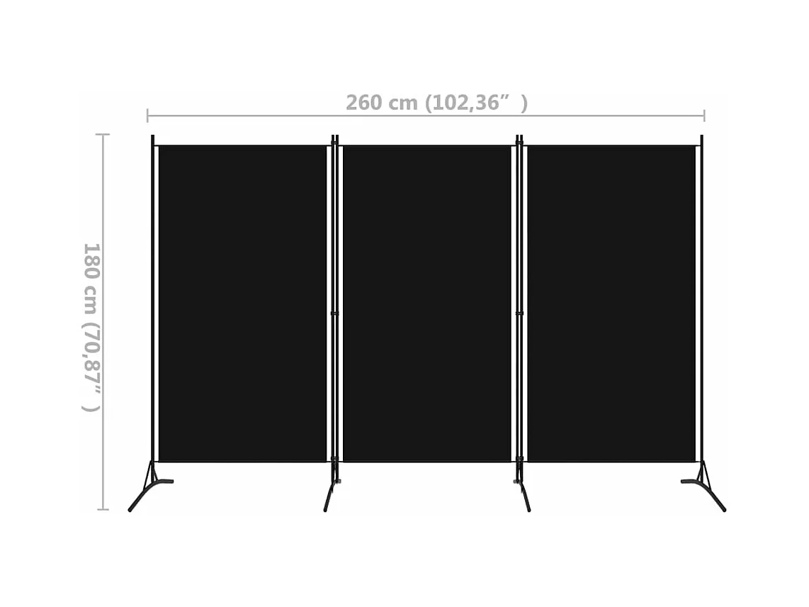 Parede divisória 3 painéis Preto 260x180 cm