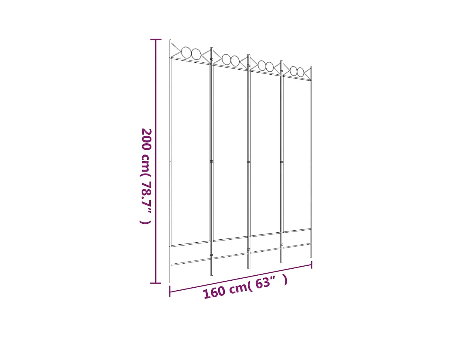 Parede divisória 4 painéis branco 160x180 cm