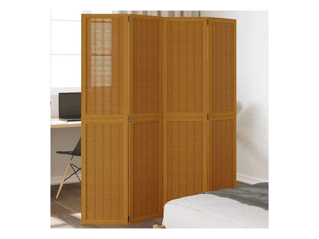 Parede divisória 4 painéis marrons madeira maciça paulownia