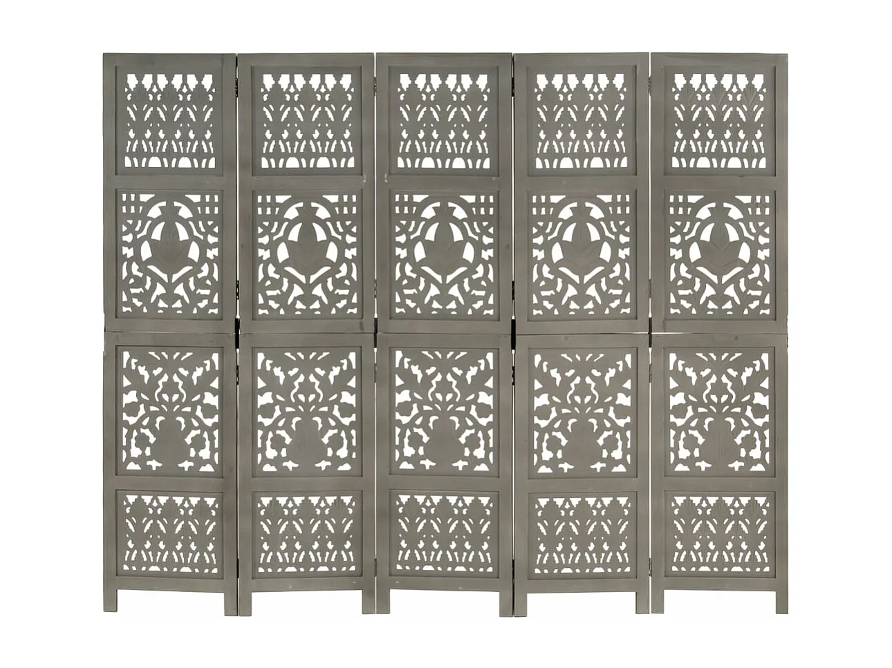 Parede divisória 5 painéis Cinza 200x165 cm Madeira de mangueira