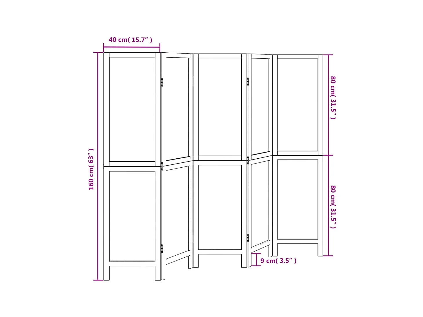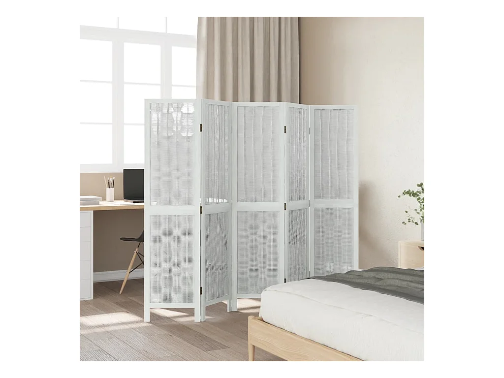 Parede divisória 5 painéis madeira paulownia maciça branca