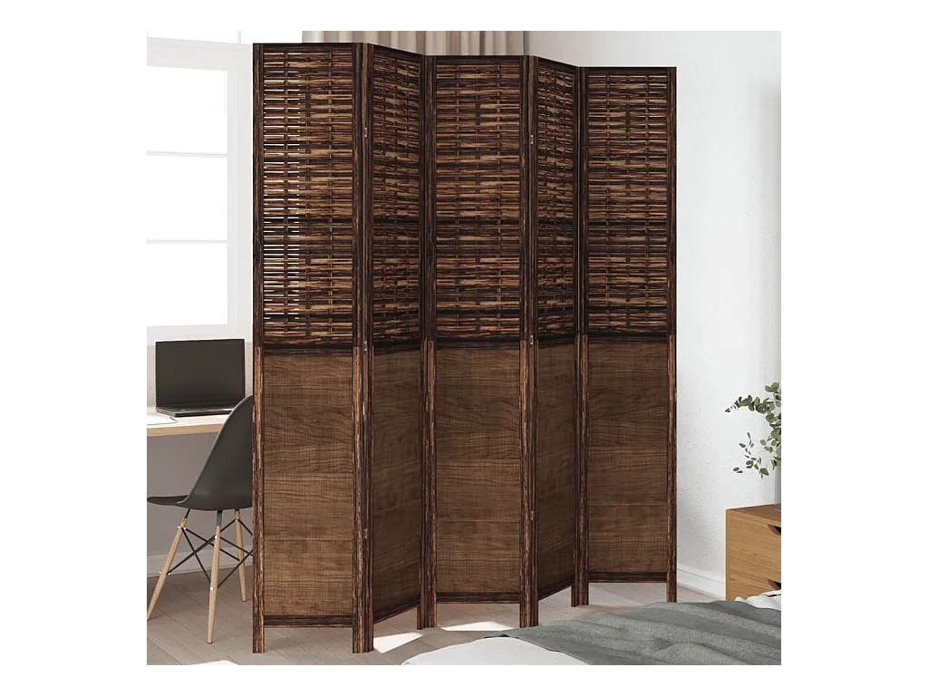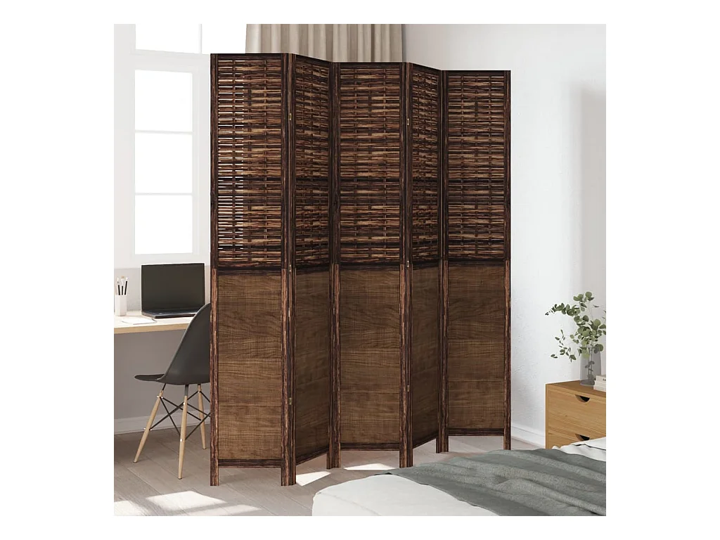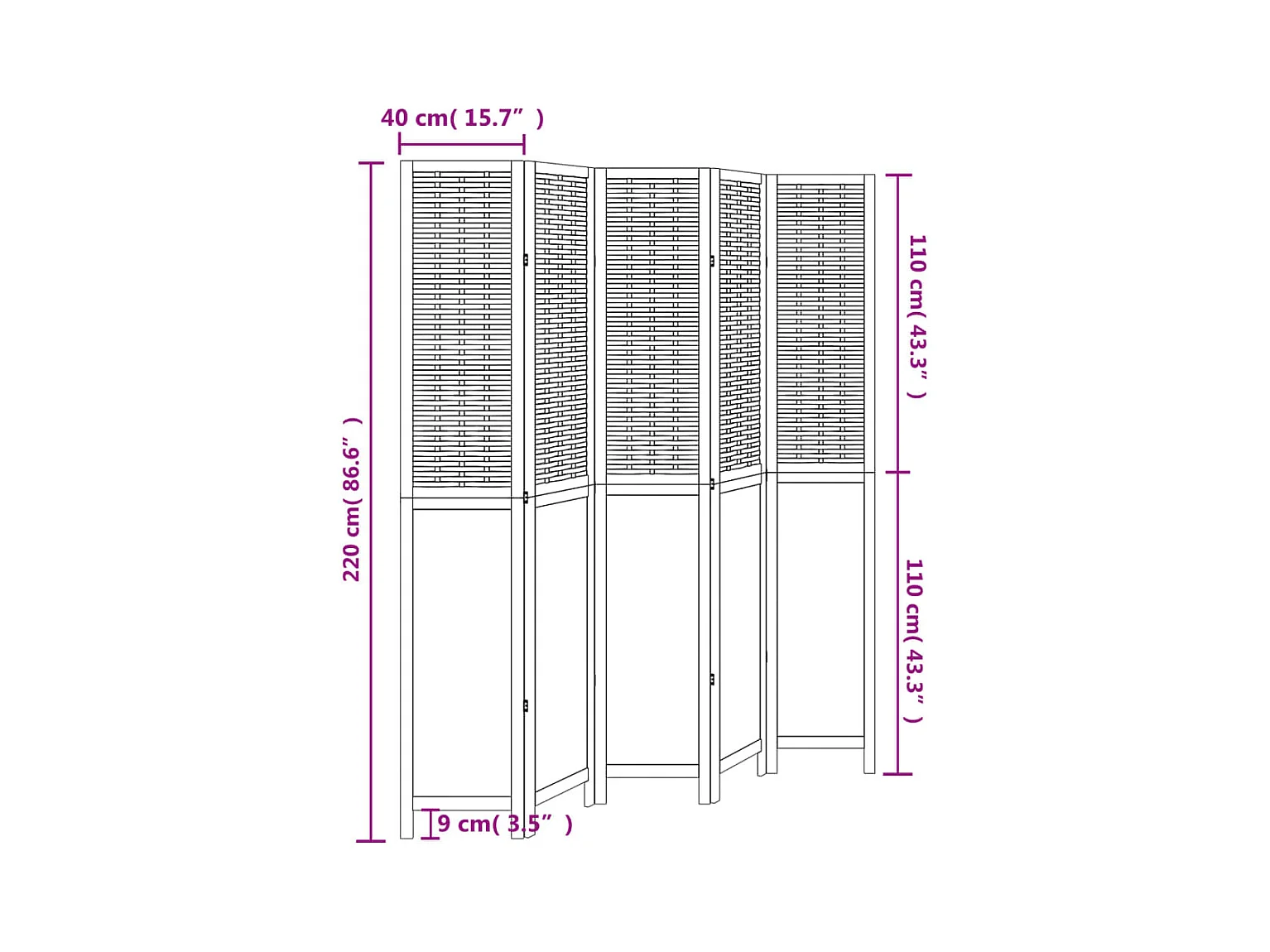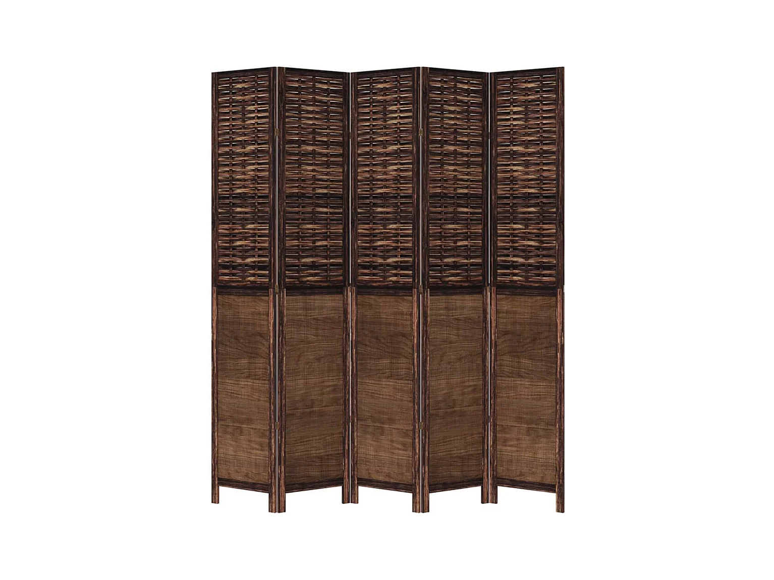 Parede divisória de paulownia sólida marrom escuro de 5 painéis