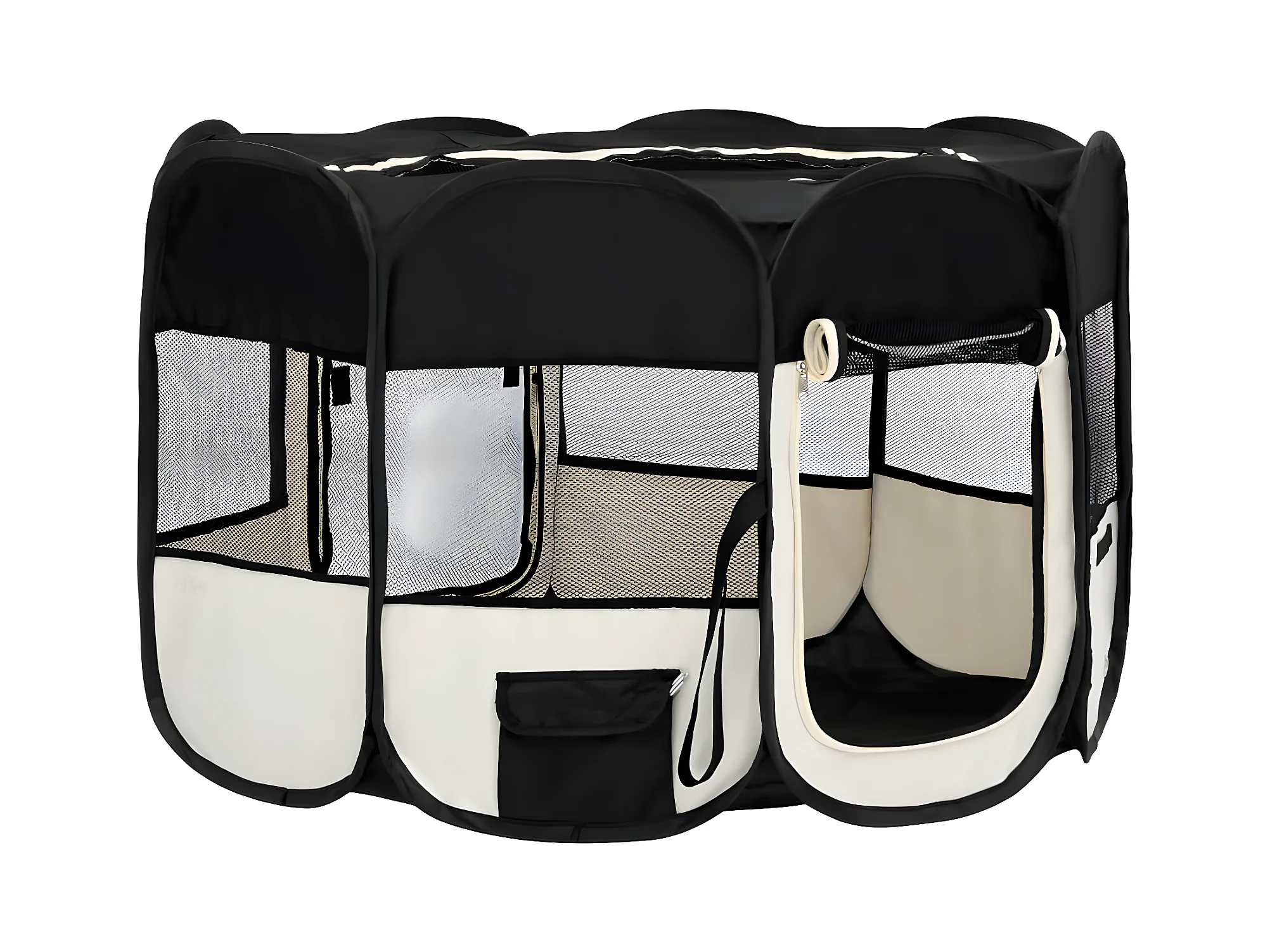 Parque dobrável p/ cão c/ saco de transporte 110x110x58cm preto PT579285