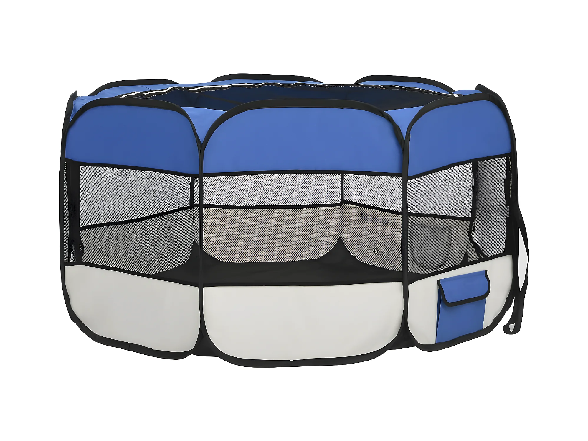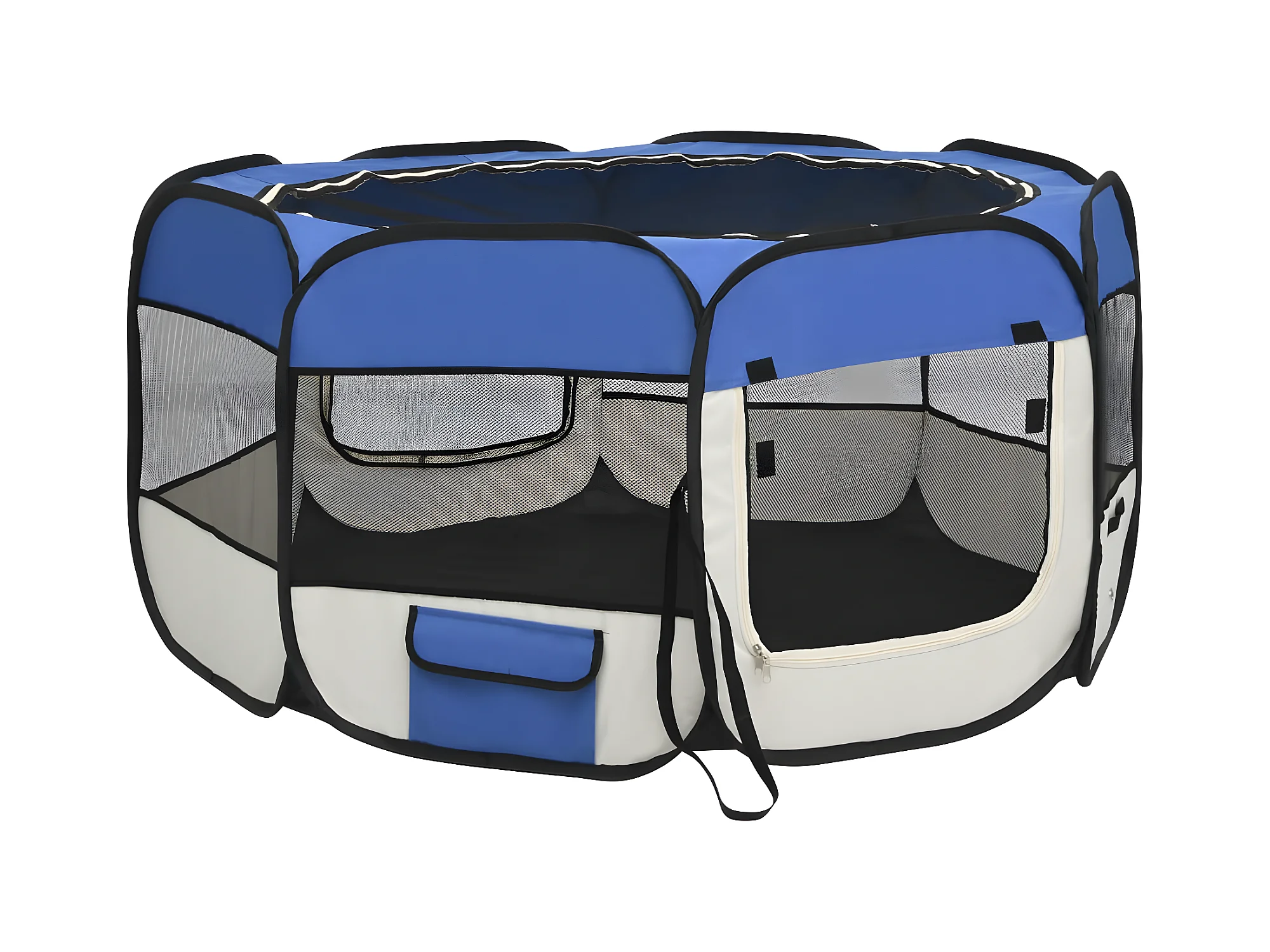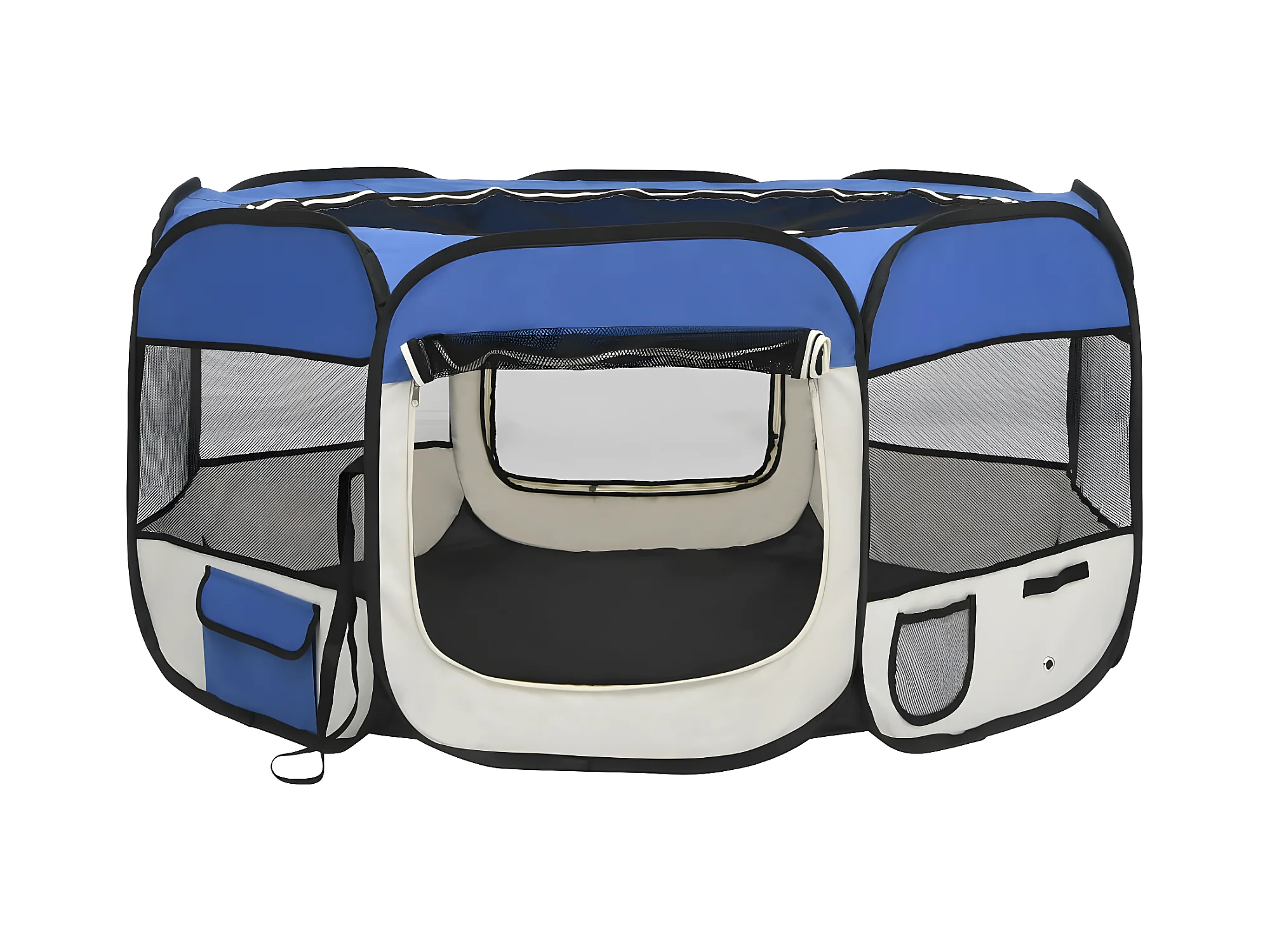 Parque dobrável p/ cão c/ saco de transporte 110x110x58cm azul PT513860
