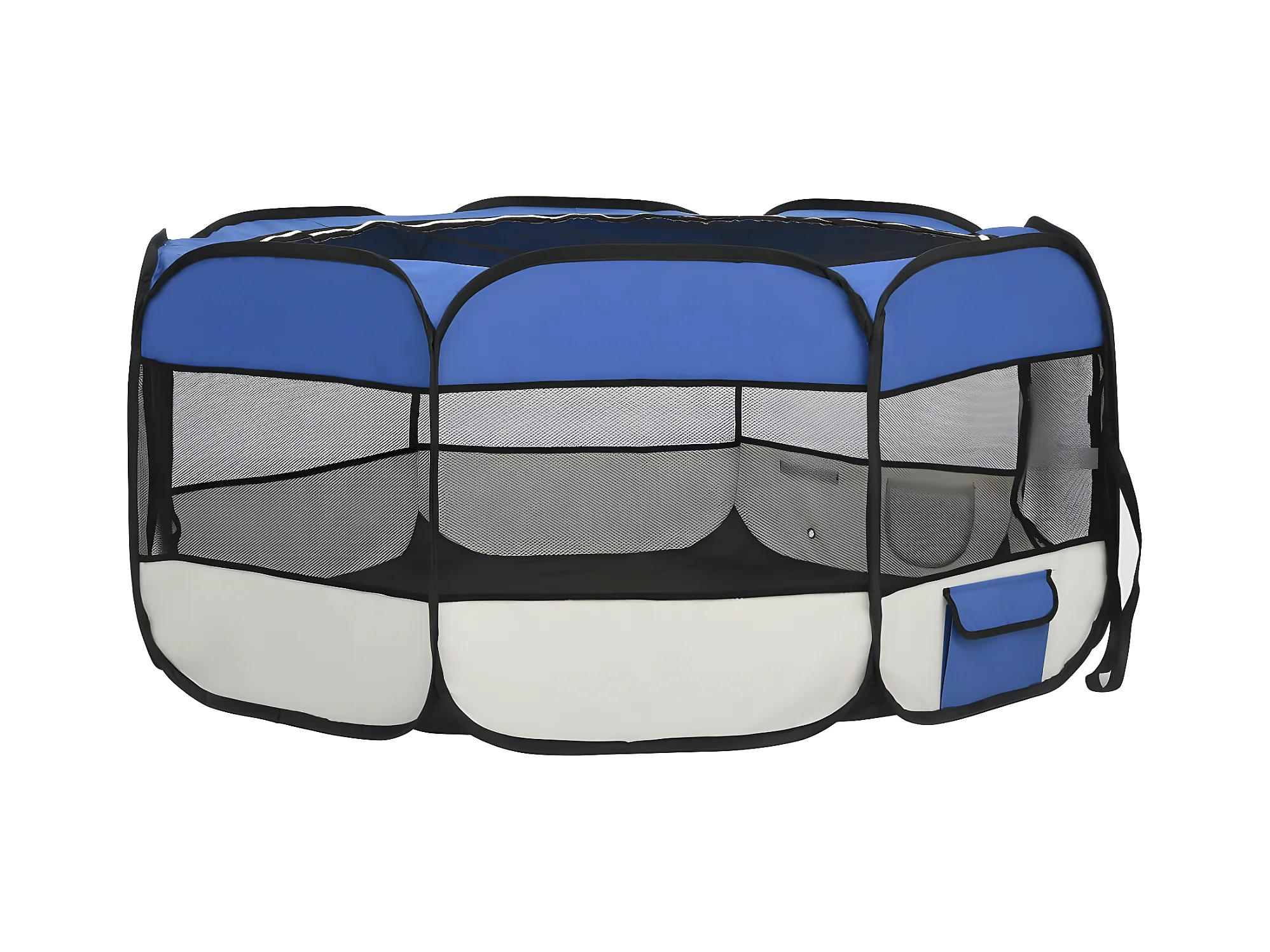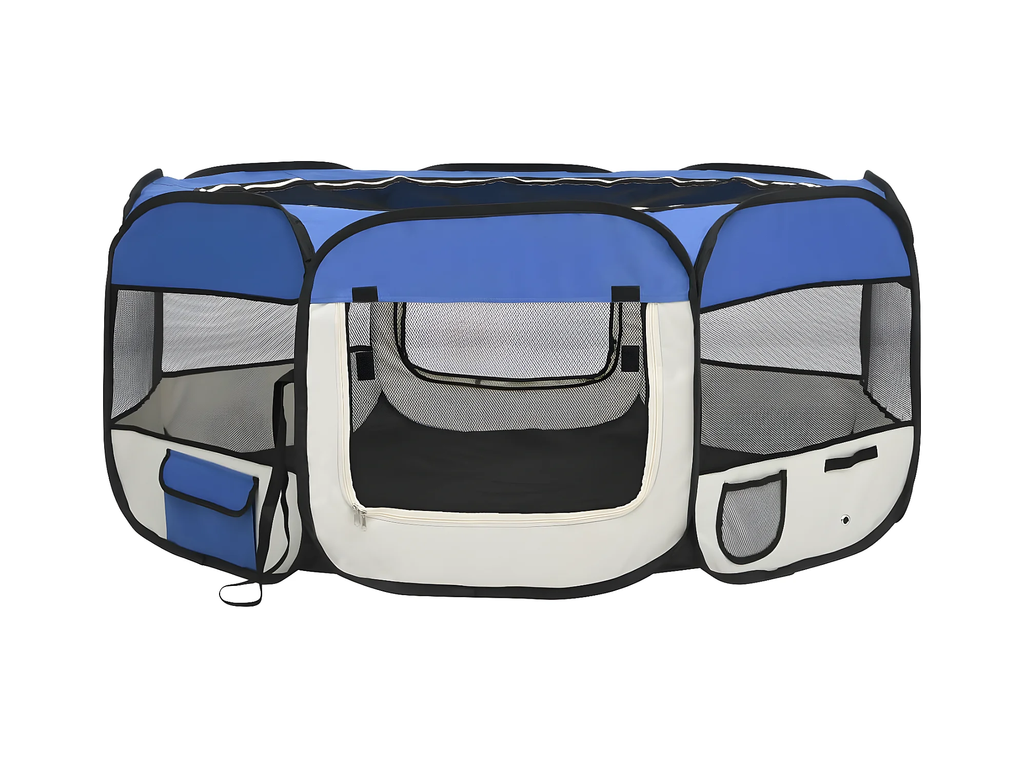 Parque dobrável p/ cão c/ saco de transporte 110x110x58cm azul PT513860