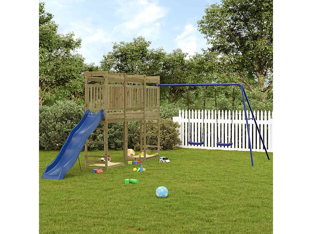 Parque infantil exterior em madeira de pinho impregnada
