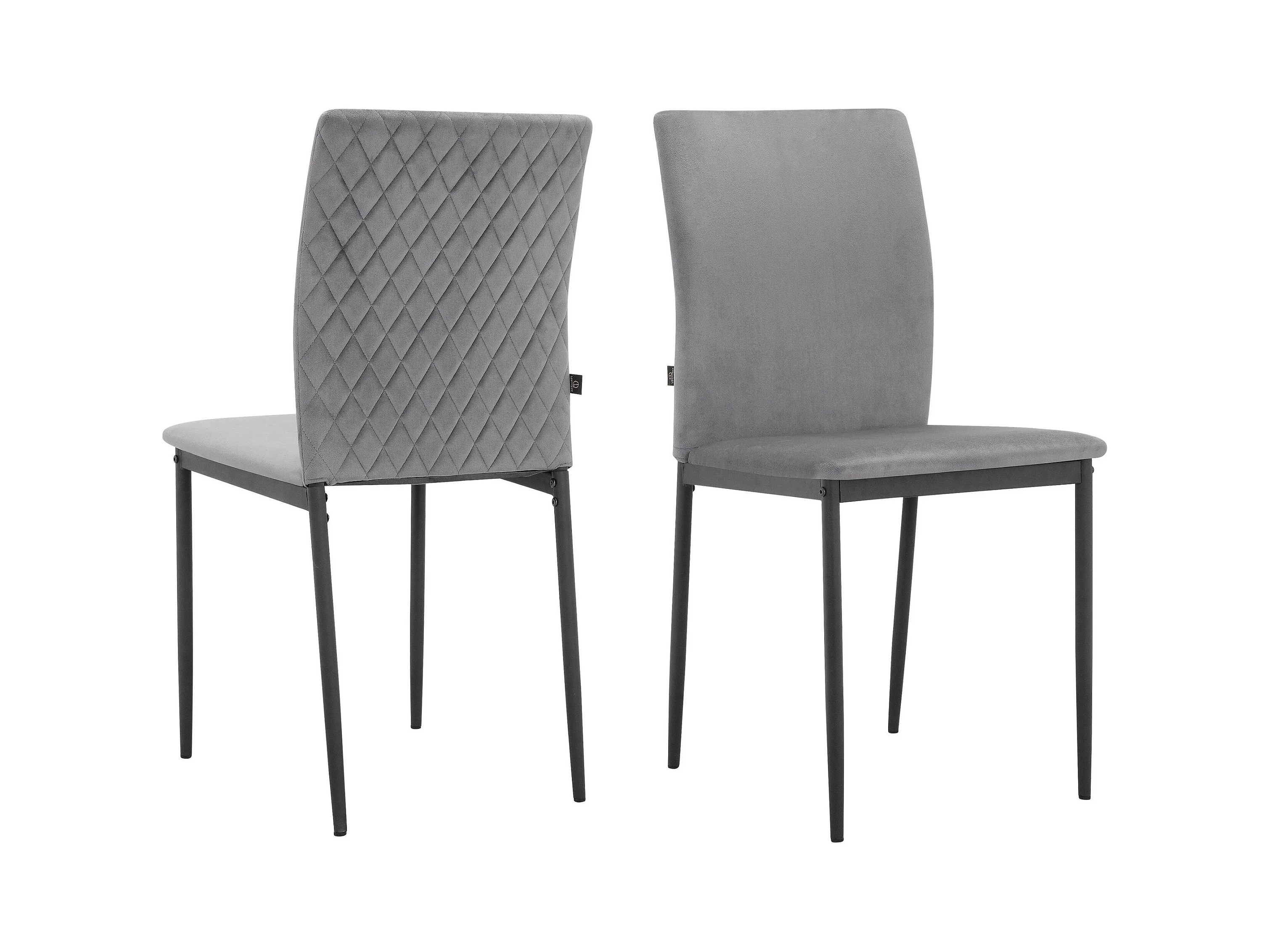 Cadeira de jantar em veludo cinza com encosto em padrão diamante, pernas de metal ajustáveis, design moderno, 47x44x84 cm, conjunto de 4