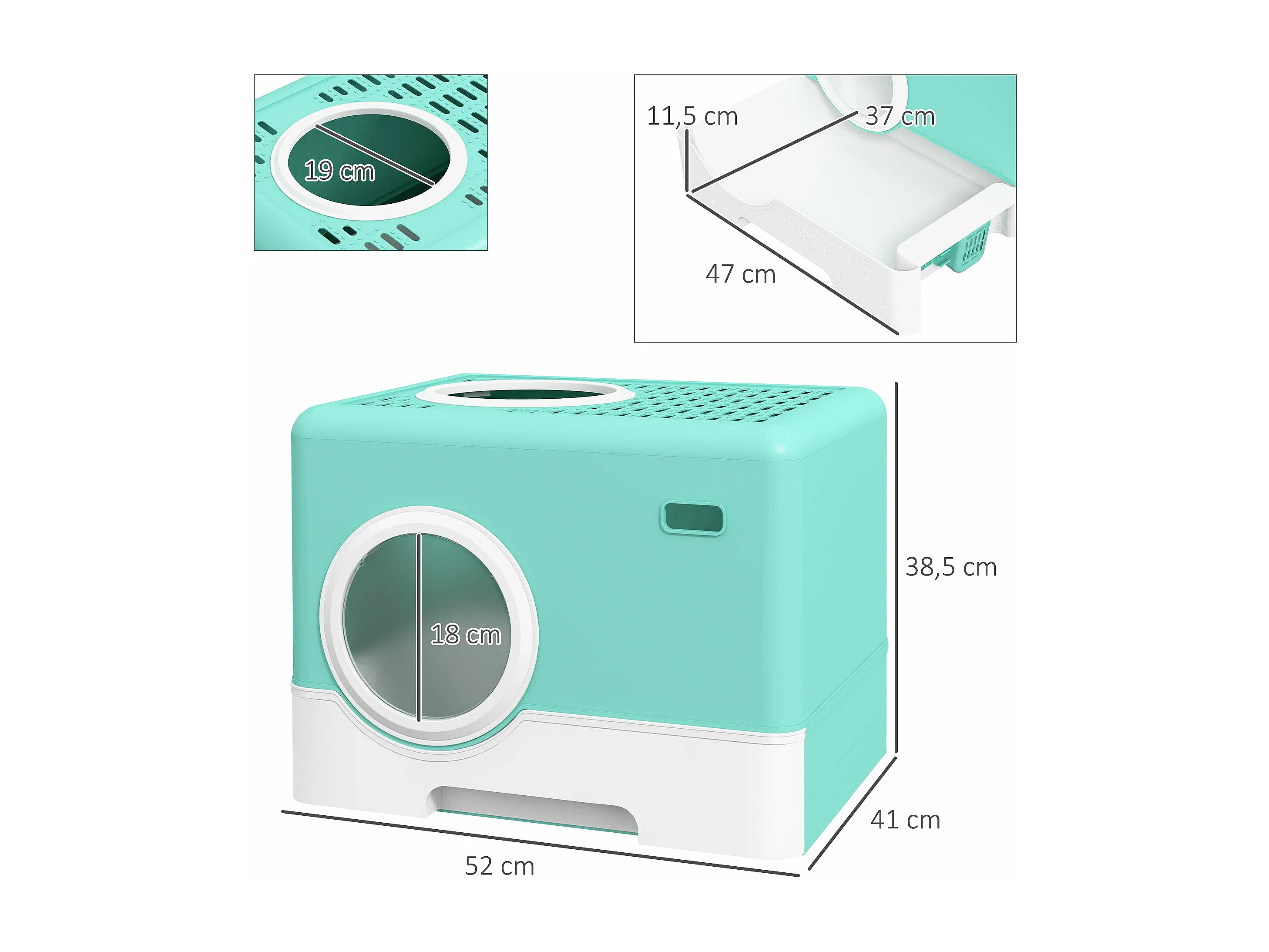 PawHut Caixa de Areia para Gatos com Bandeja Removível e Entrada Frontal Verde 52x41x38,5 cm