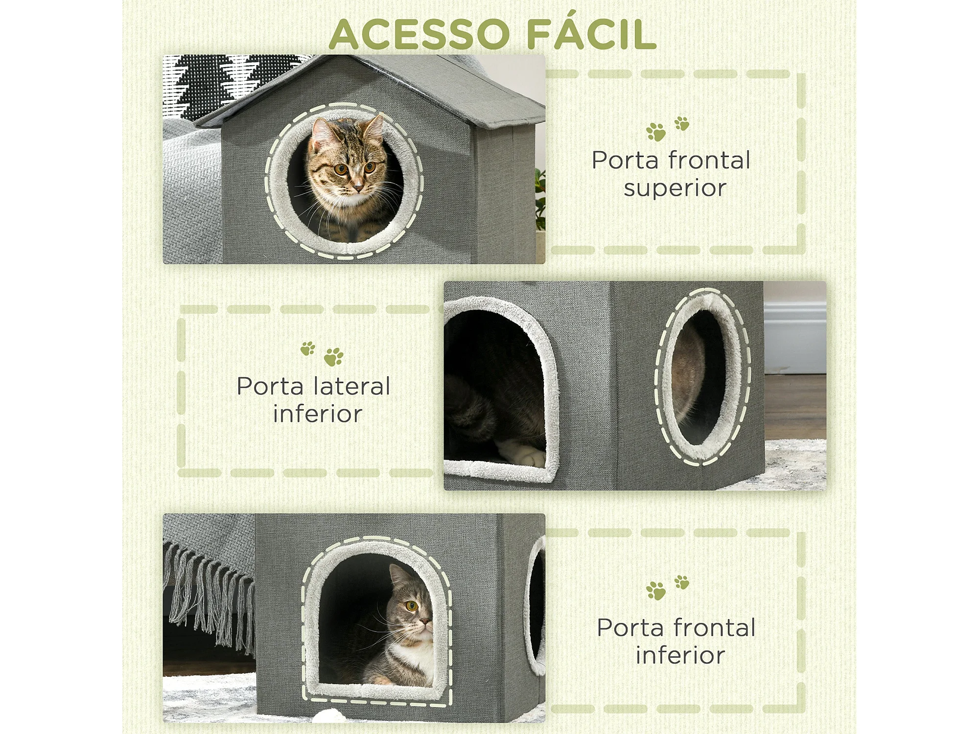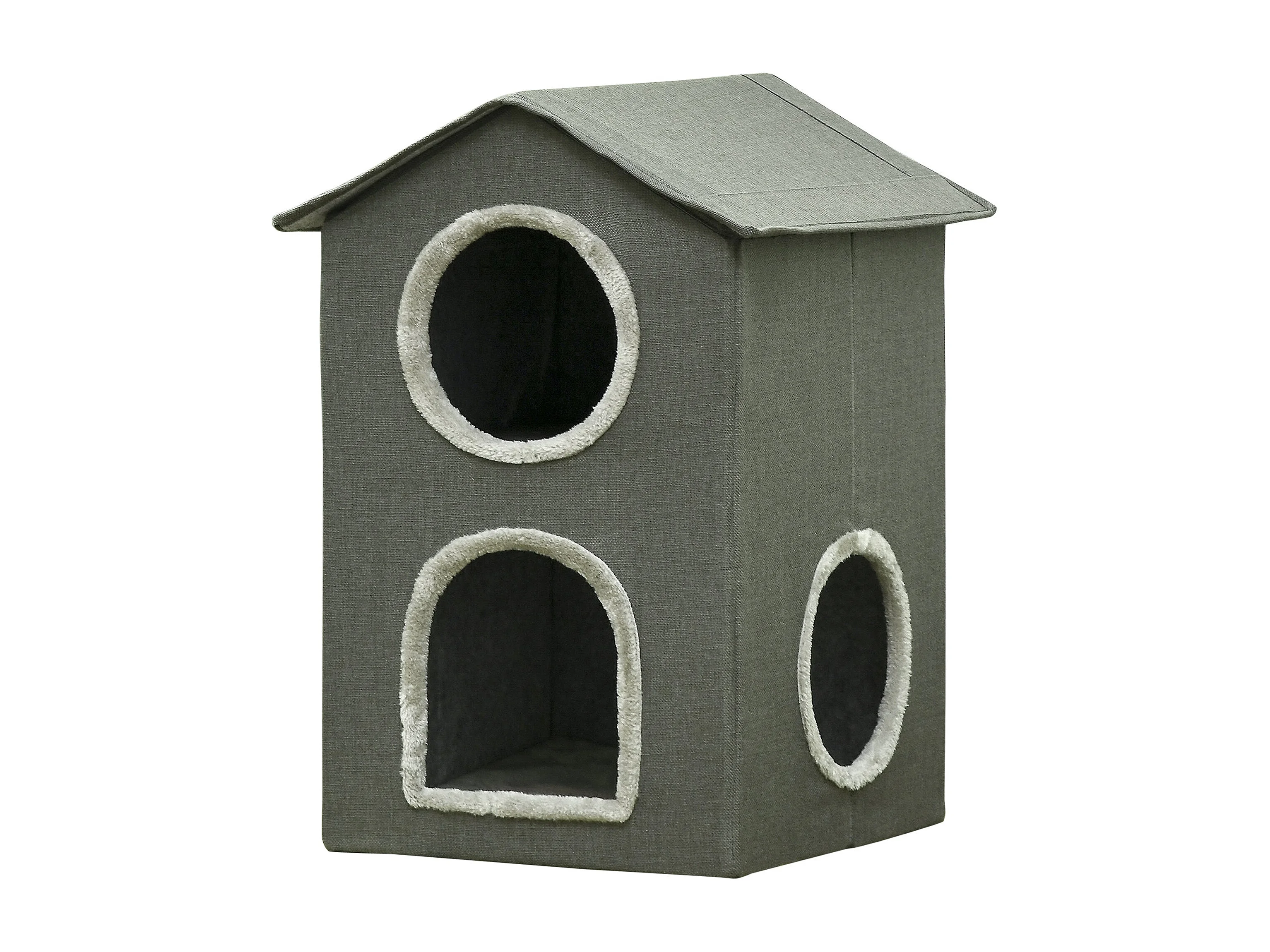 PawHut Casinha para Gatos de 2 Níveis com Almofadas Laváveis e 3 Entradas - Cinza 42x46x59,5 cm