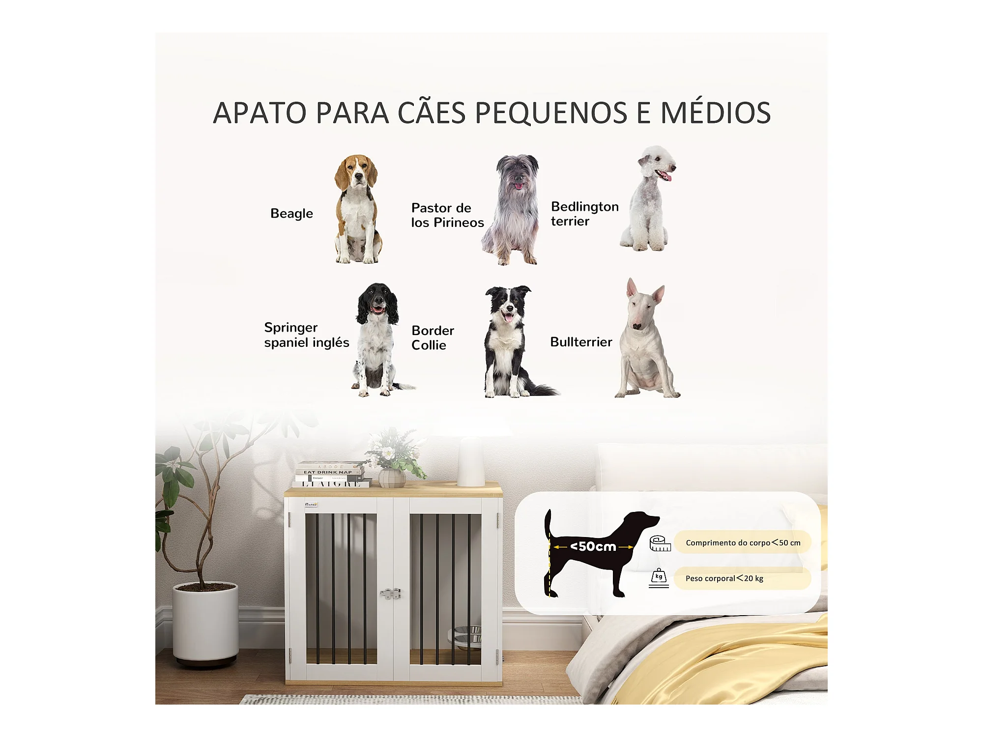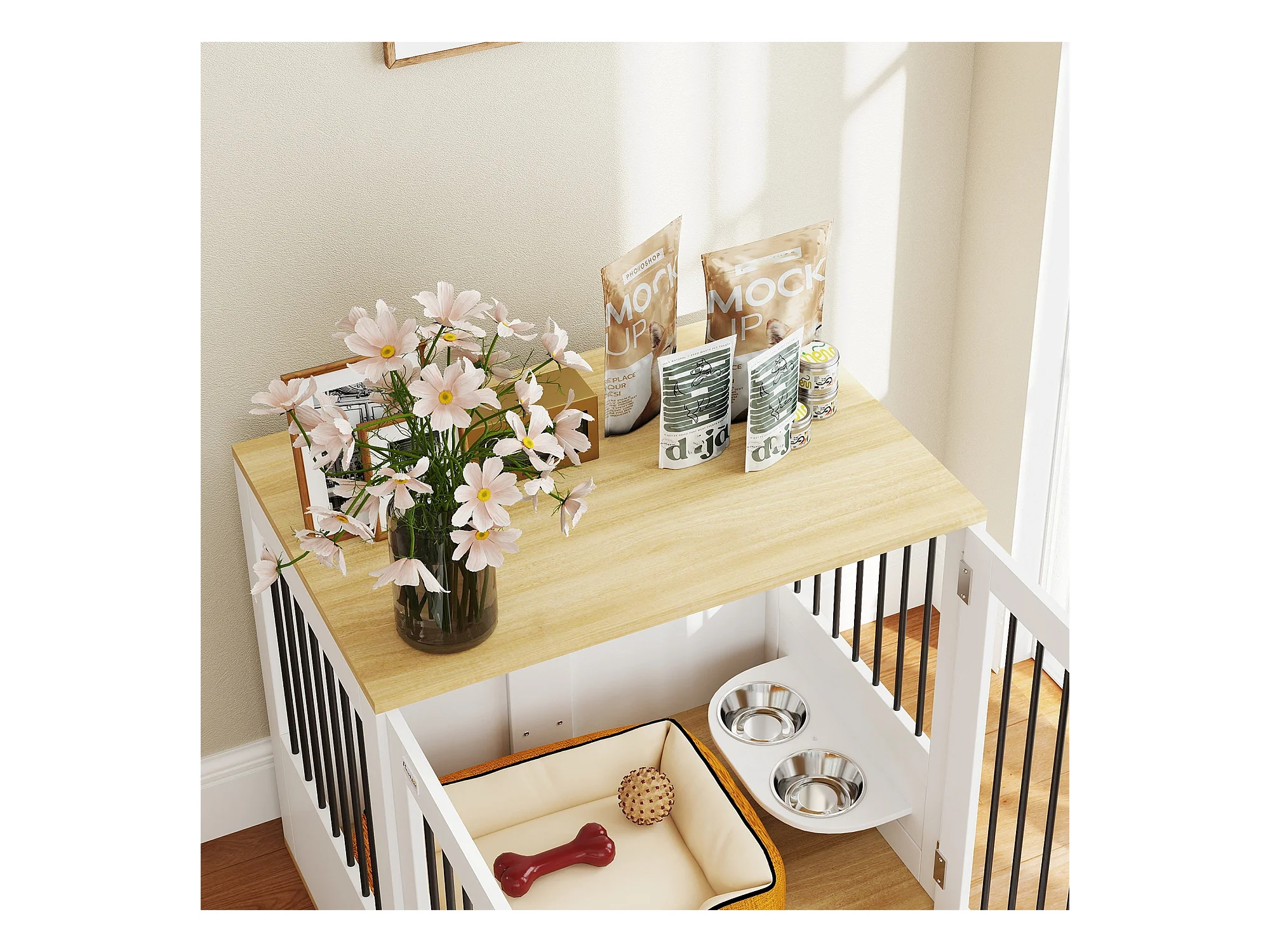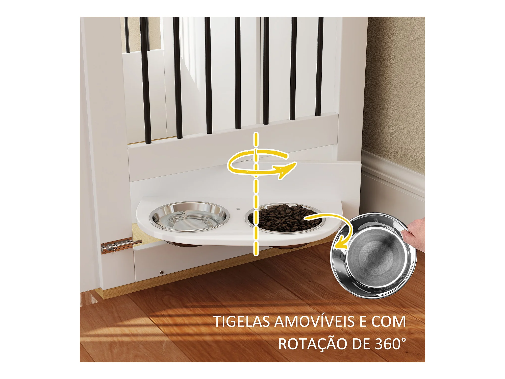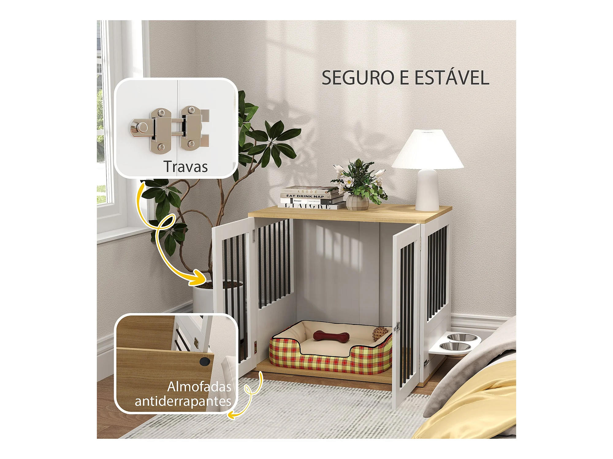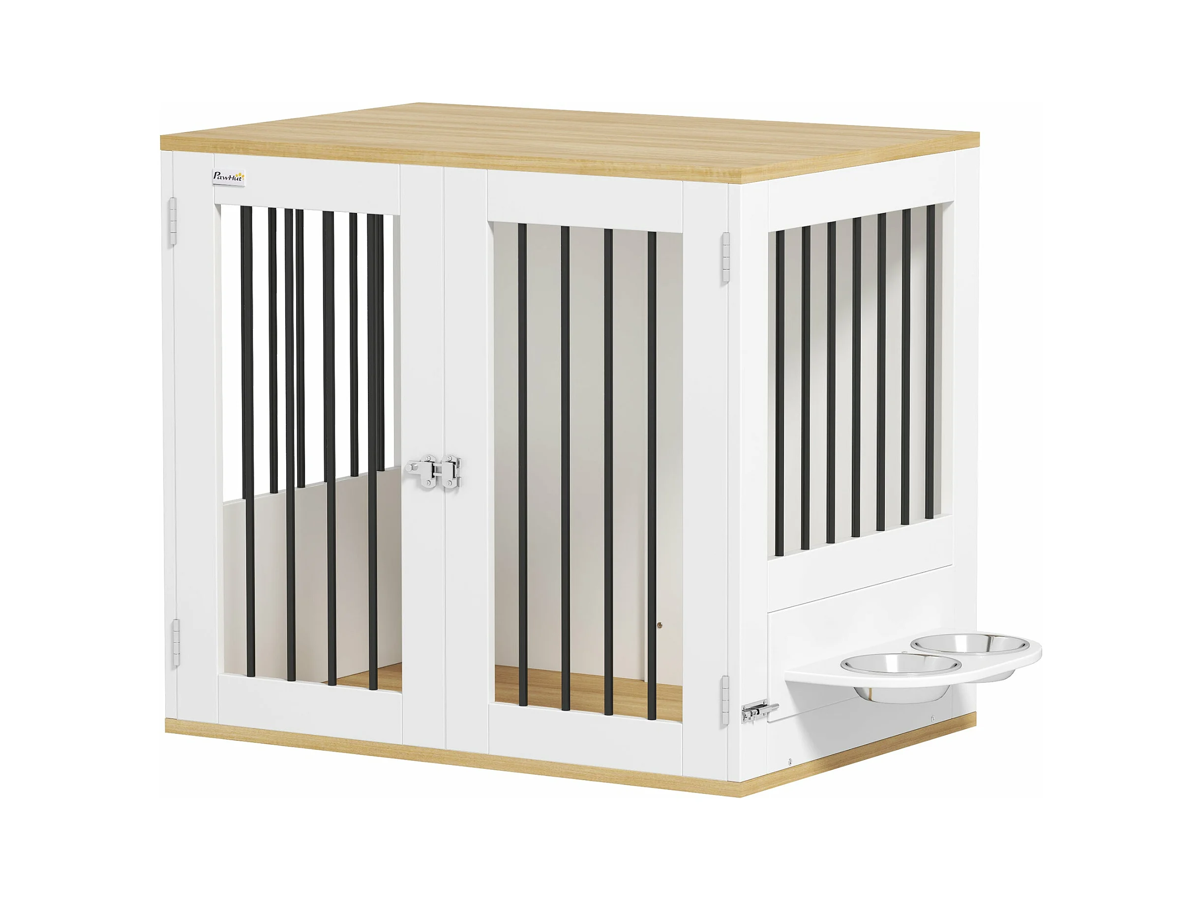 PawHut Gaiola para Cães Médios com Mesa Auxiliar e Comedouro Giratório 2 Tigelas Antiderrapantes 80x55x71,5 cm Branco