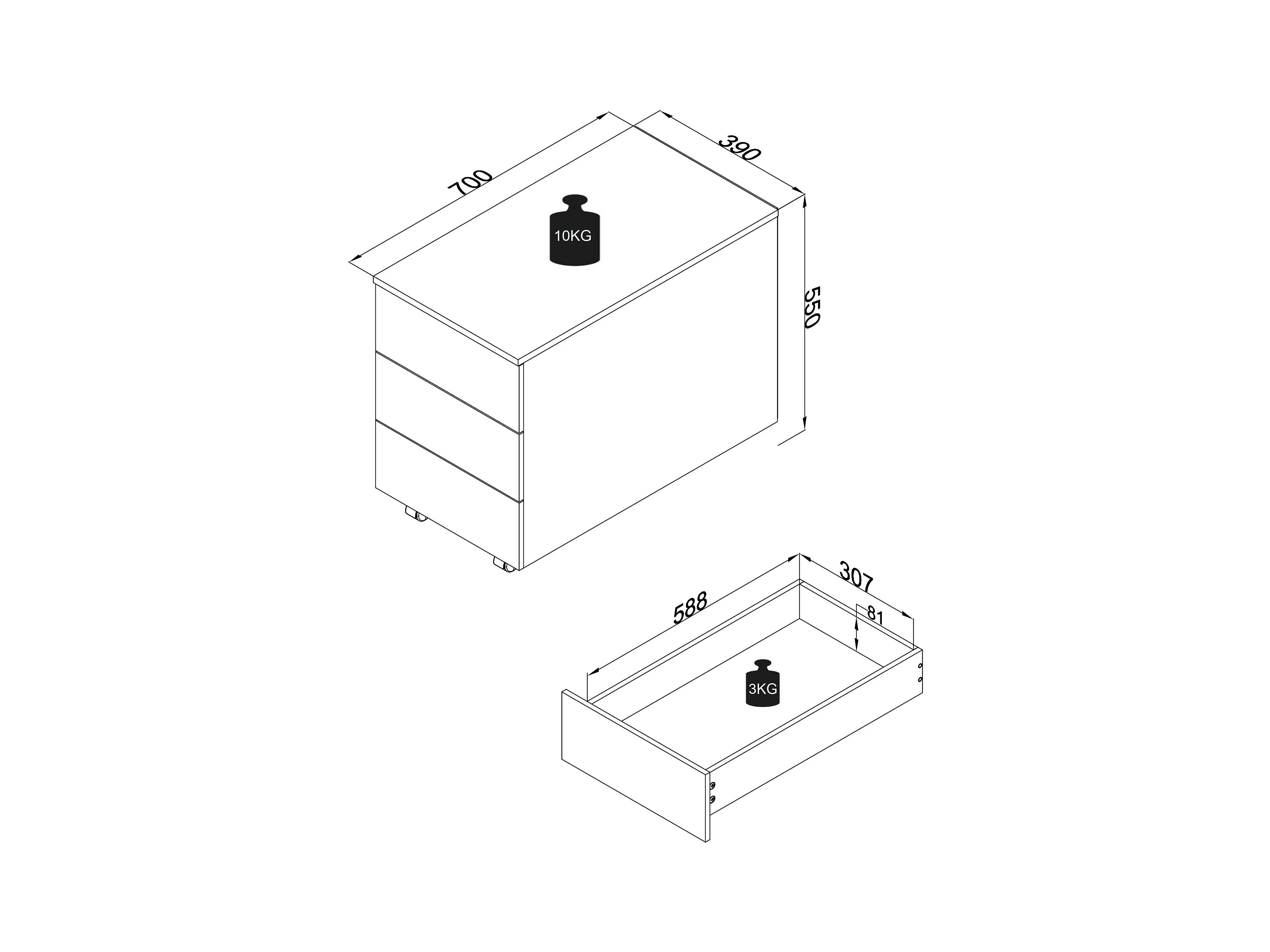 VCM Roll Container | Recipiente lateral com três gavetas | Dimensões aprox. A. 50 x L. 39 x P. 70 cm | Armazém de escritório - Salia (antracite)