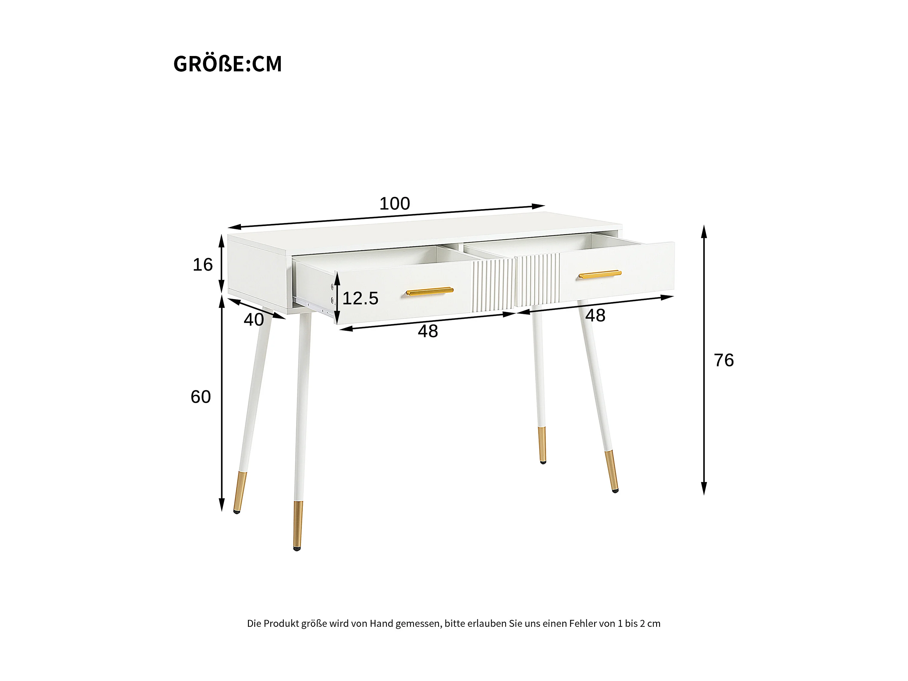 Penteadeira 100x40x76 cm - com 2 gavetas - pernas de metal - branco (sem espelho)