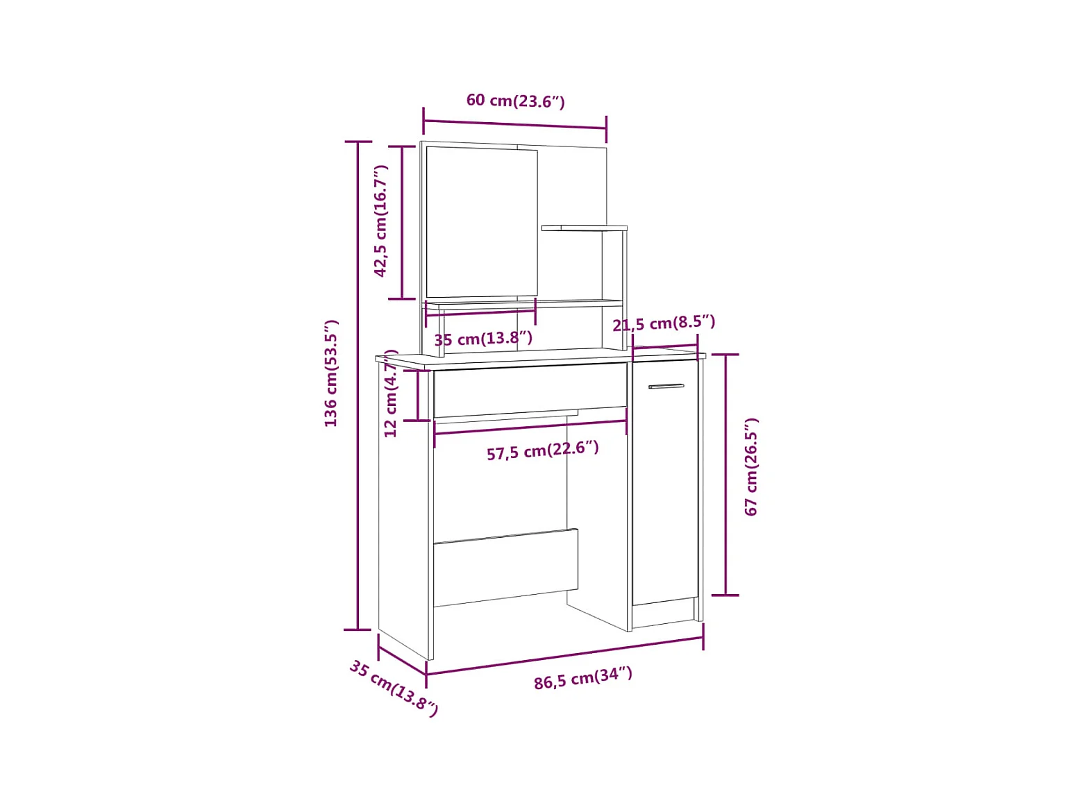 Penteadeira com espelho Cinza concreto 86,5x35x136 cm