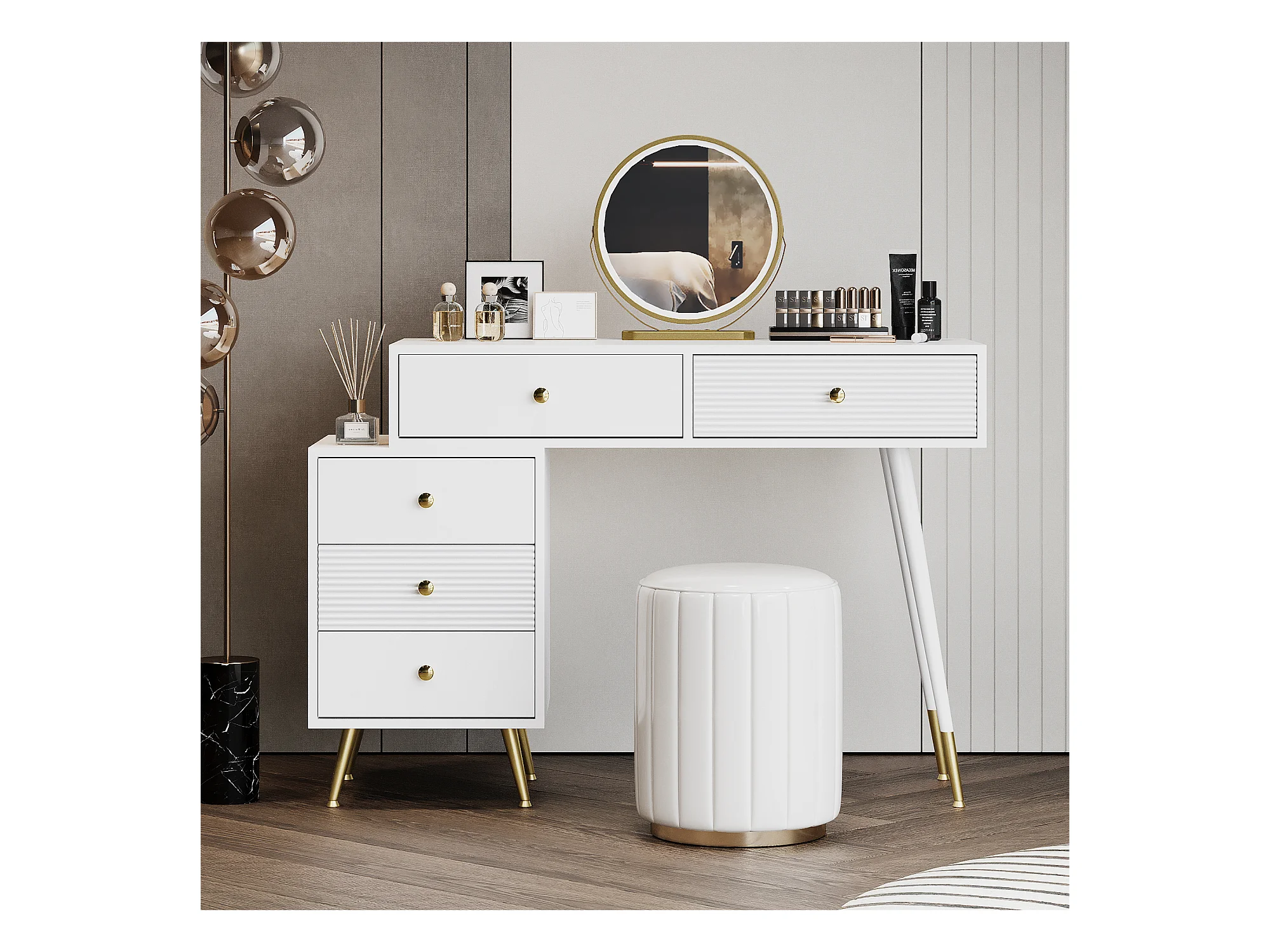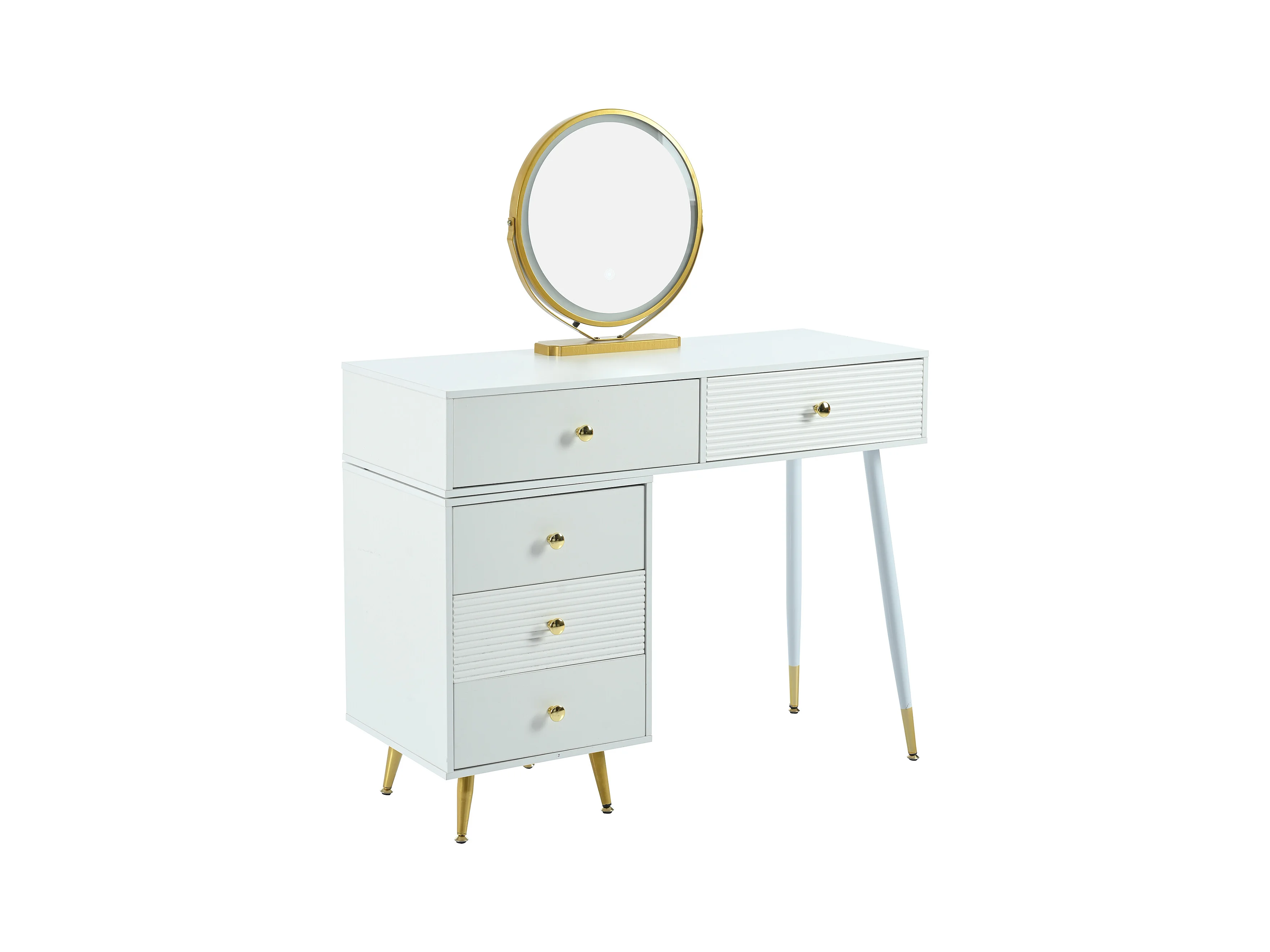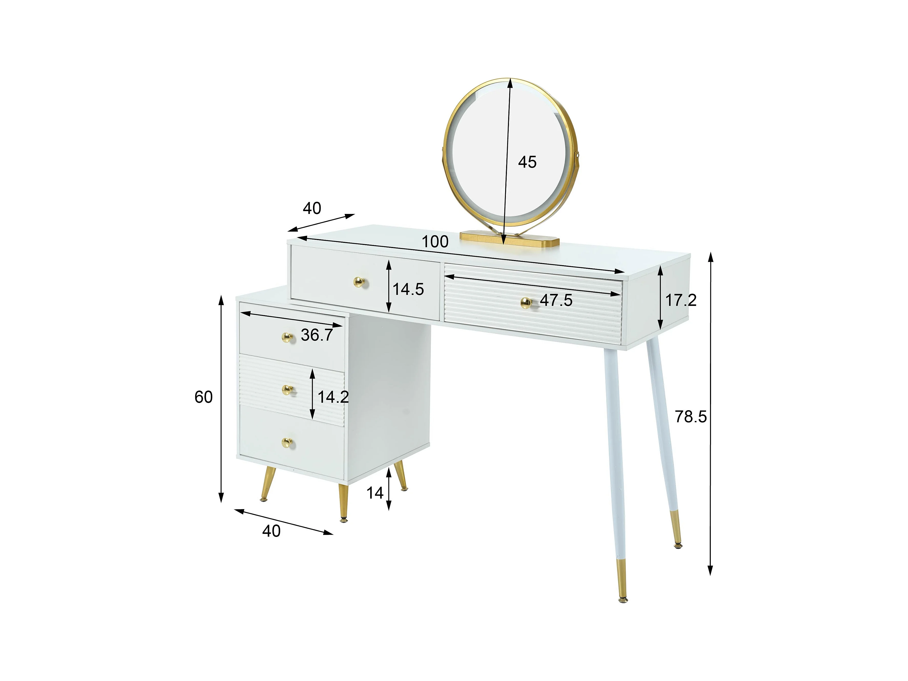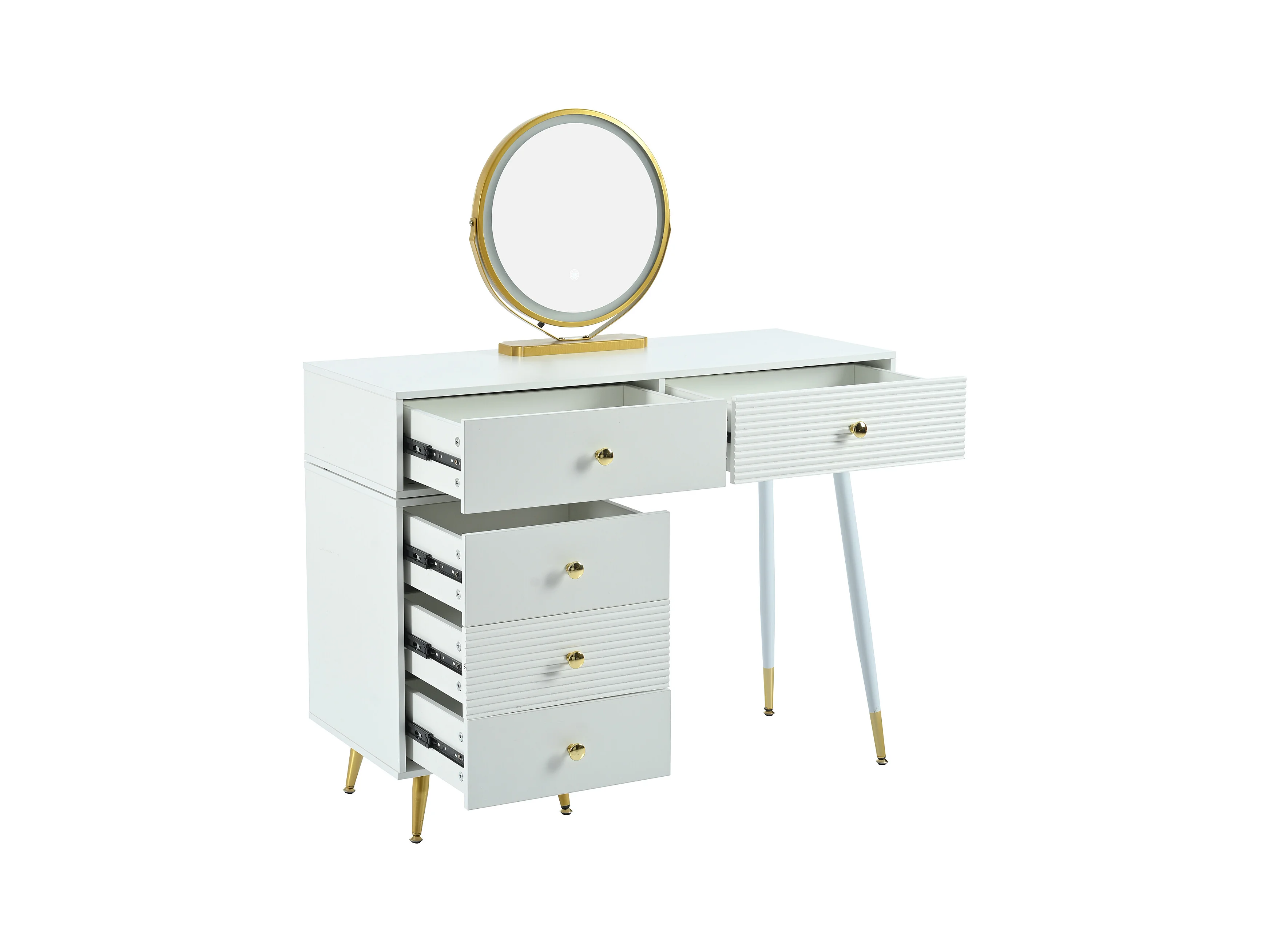 Penteadeira com espelho LED - 5 gavetas espaçosas + armário lateral regulável - Madeira MDF - Branco
