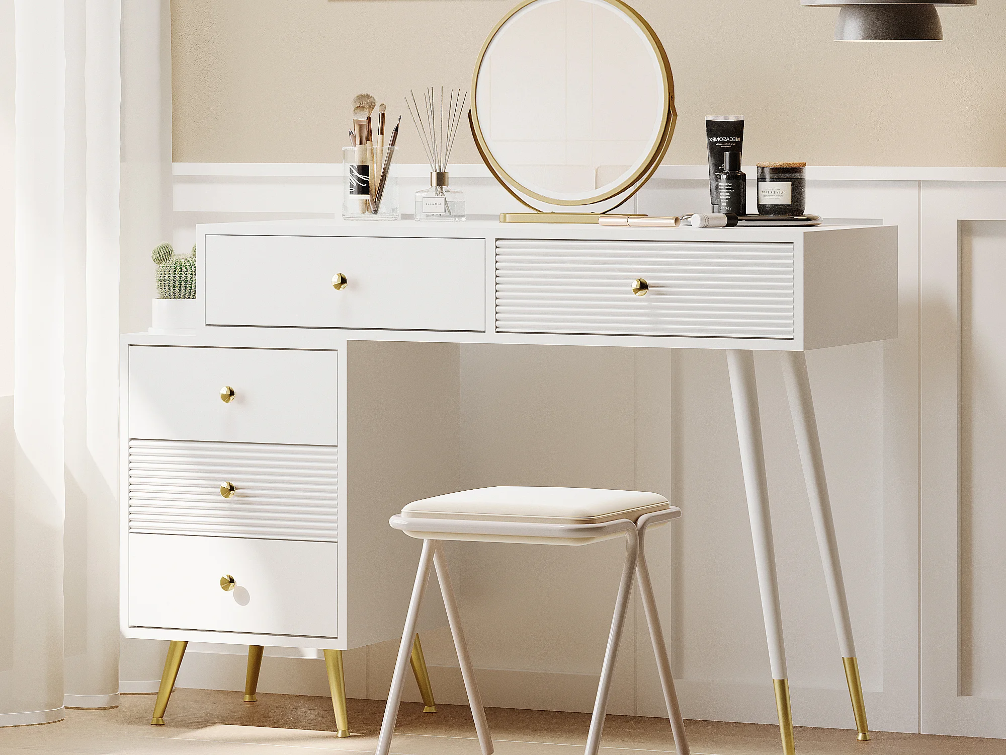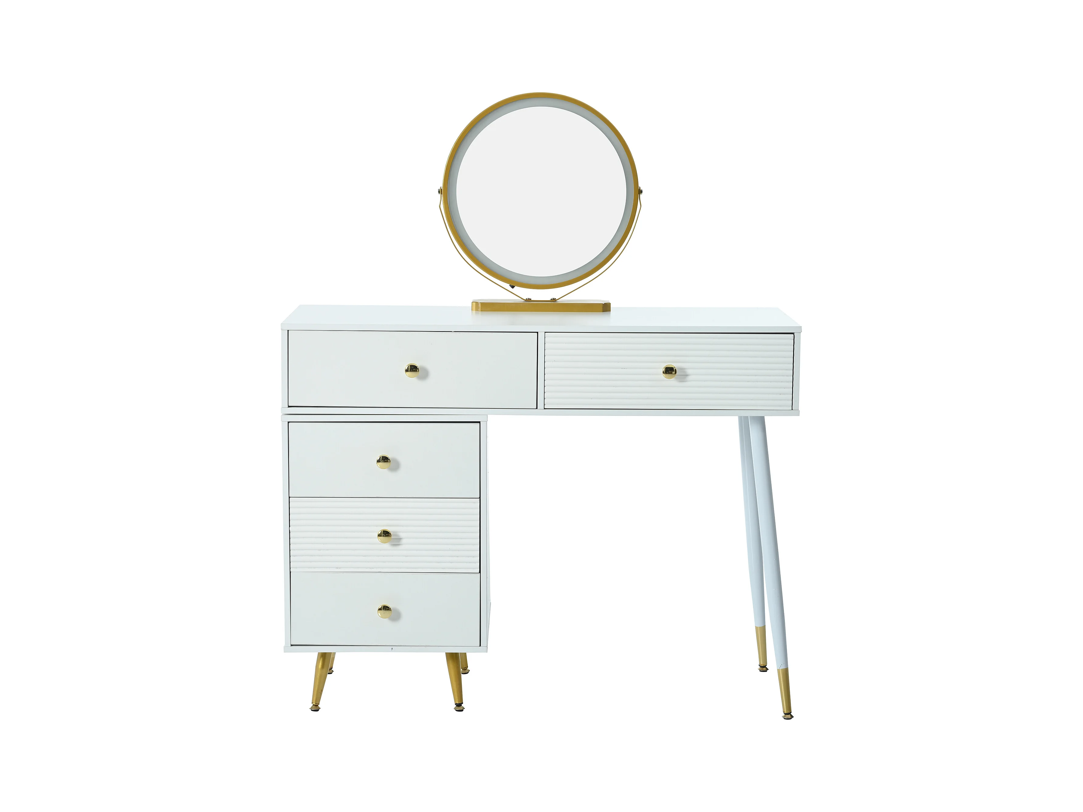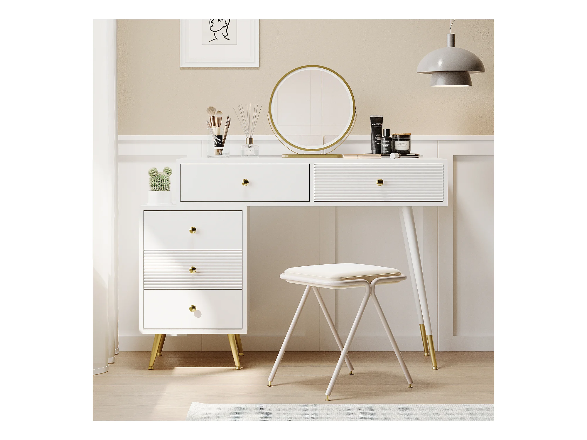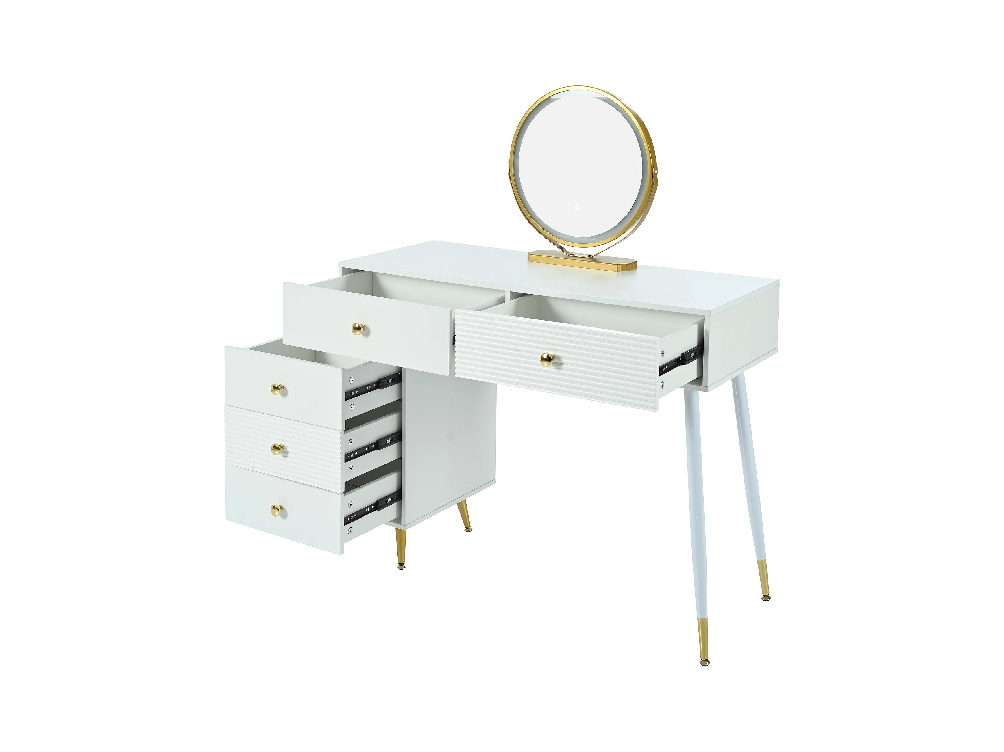Penteadeira com espelho LED - 5 gavetas espaçosas + armário lateral regulável - Madeira MDF - Branco